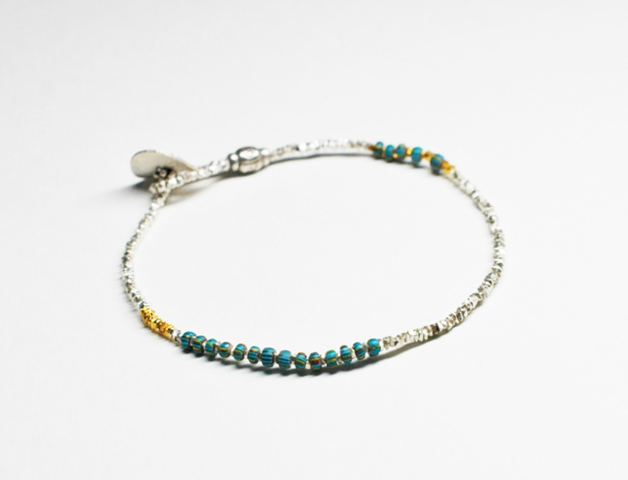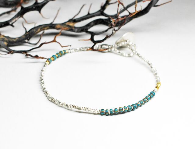 ターコイズブルーシェブロンビーズとさざれカレンシルバーの華奢なブレス
