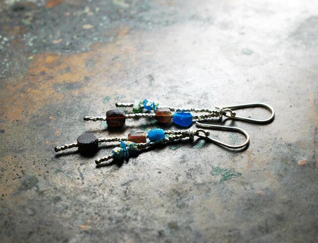 多彩なローマングラスと煌めくカレンシルバーの2連ピアス