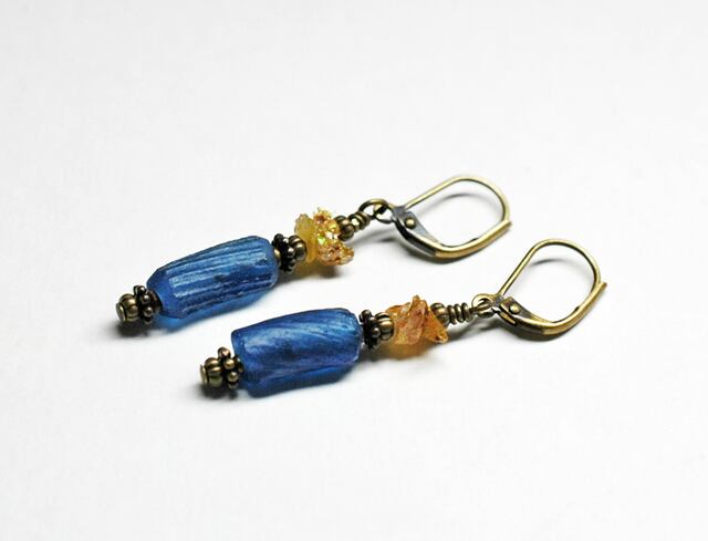さざれ型と細長いローマングラスを繋いだピアスです。