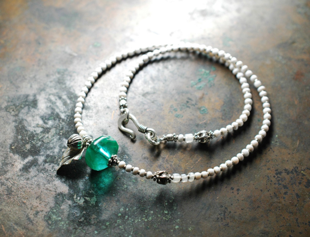 ウランガラスとホワイトベネチアビーズのネックレス