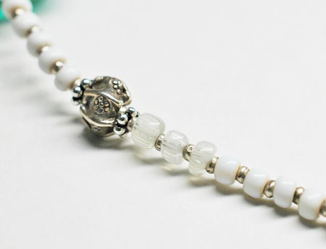 ちょっと不揃いな白いビーズはベネチア産のアンティークビーズです。(19~20世紀)