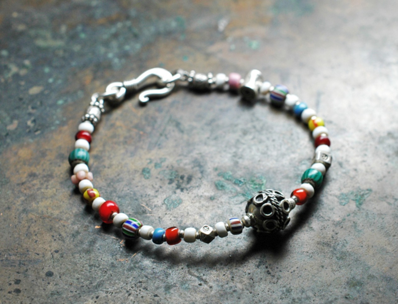 色んなベネチア産のアンティークビーズをミックスしたブレスです。