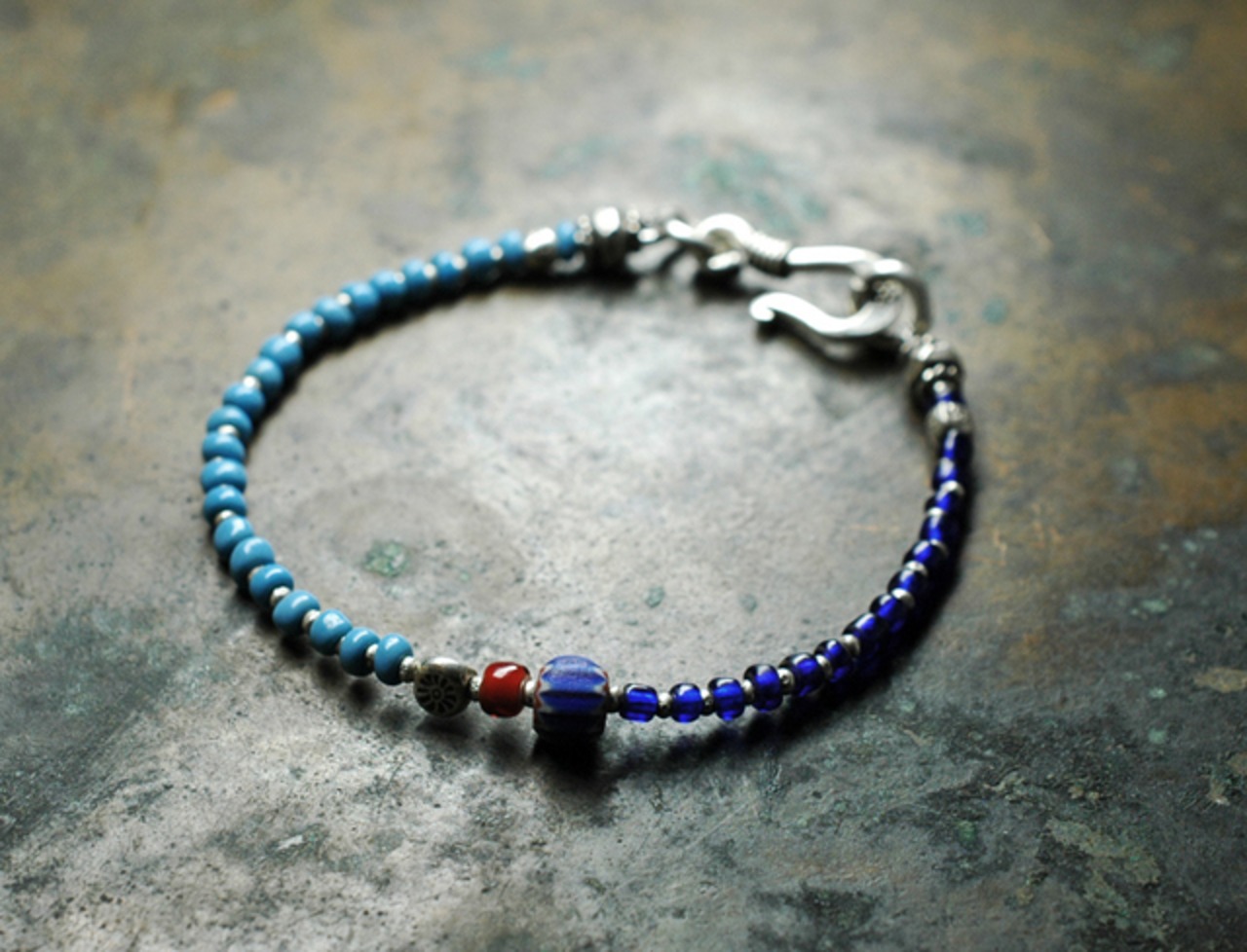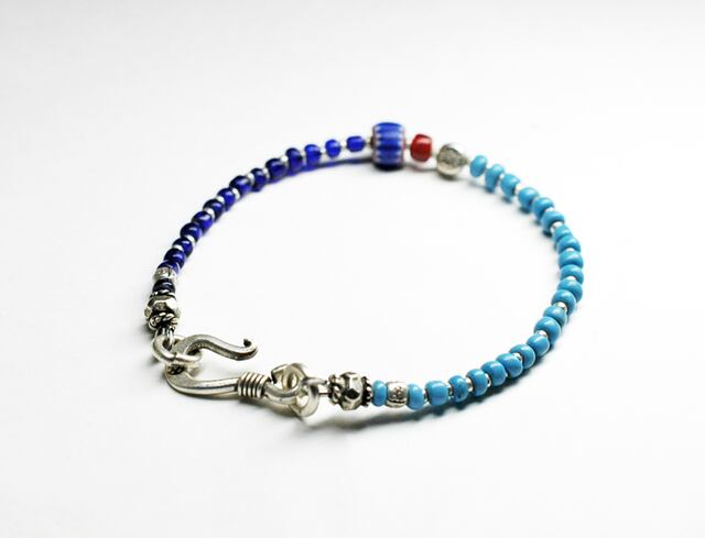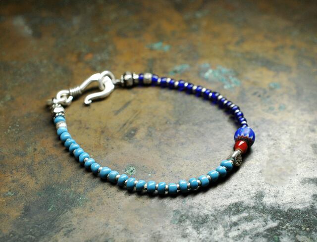 アンティークベネチアビーズの青&水色のツートンカラーブレス