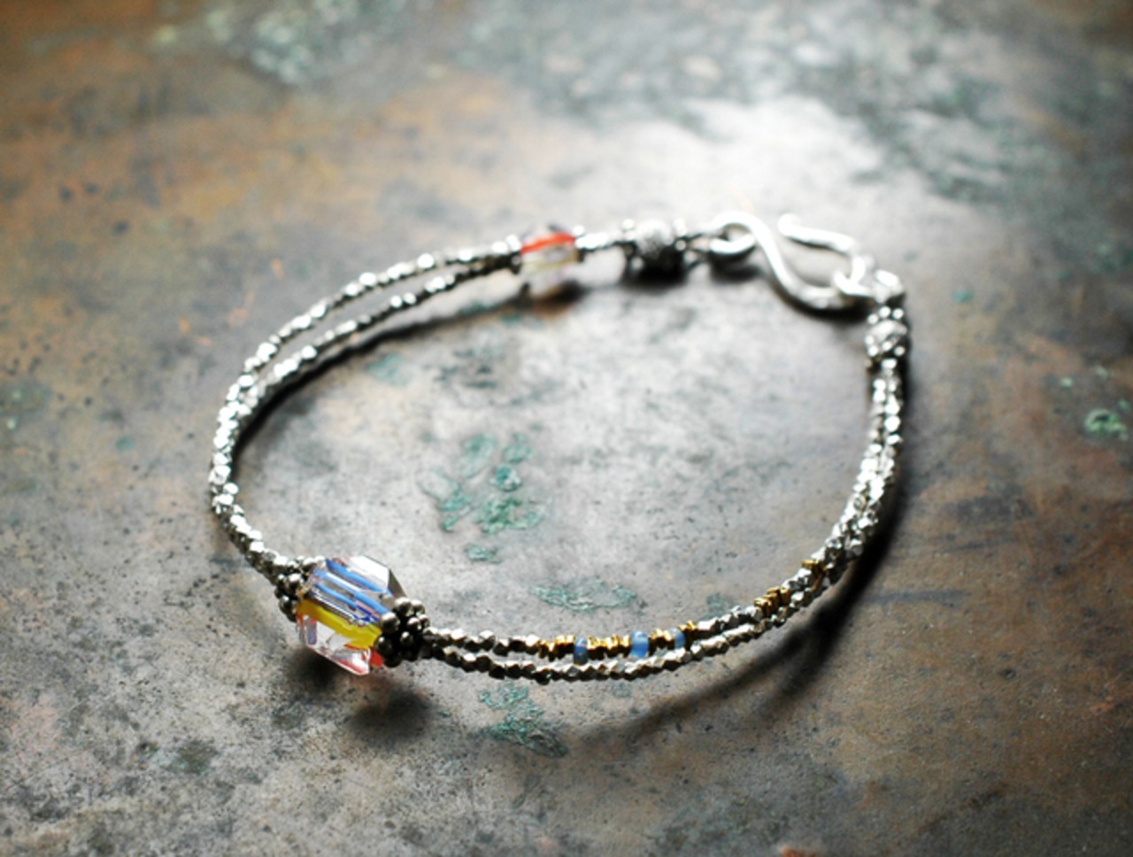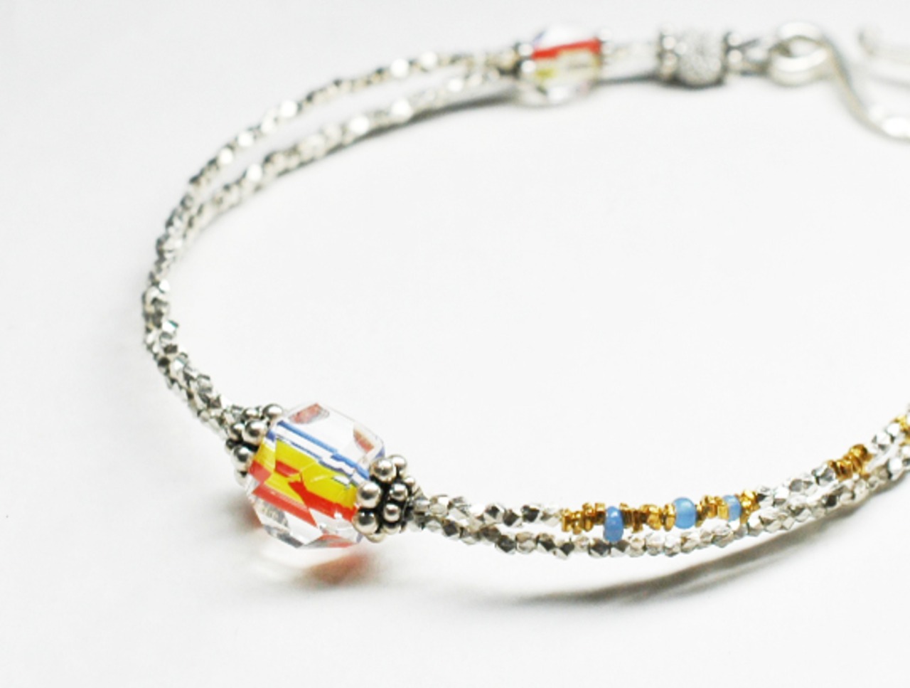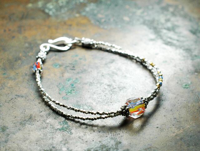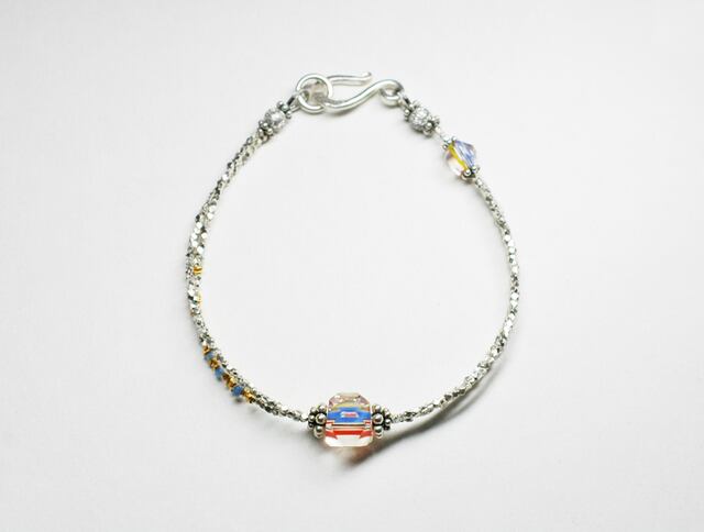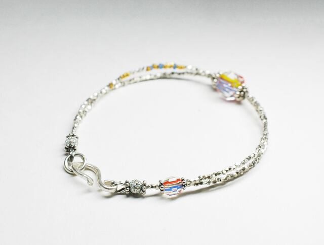 カットが美しいヴィンテージビーズと煌めくカレンシルバーの2連ブレス