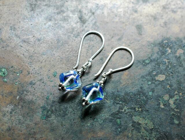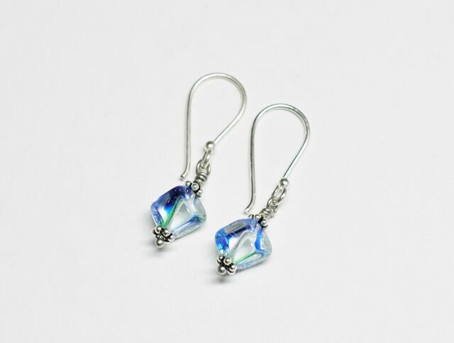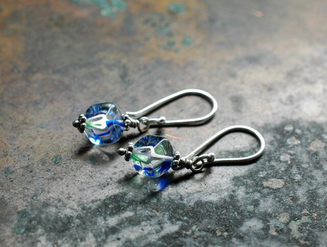 アイリスガラスと呼ばれるチェコ産のヴィンテージビーズのピアスです。