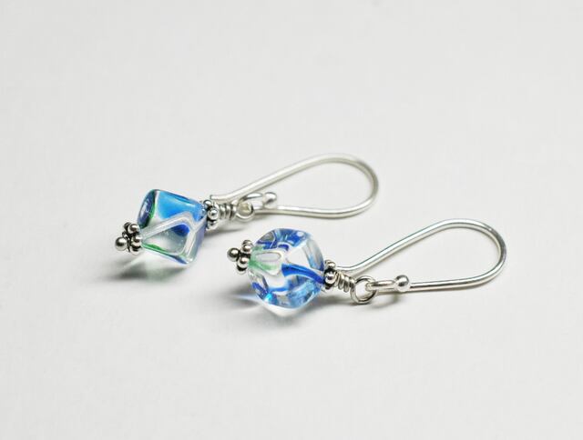 ヴィンテージアイリスガラスの一粒ピアス
