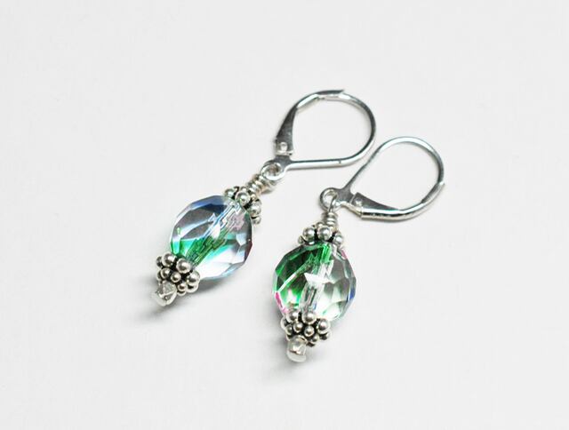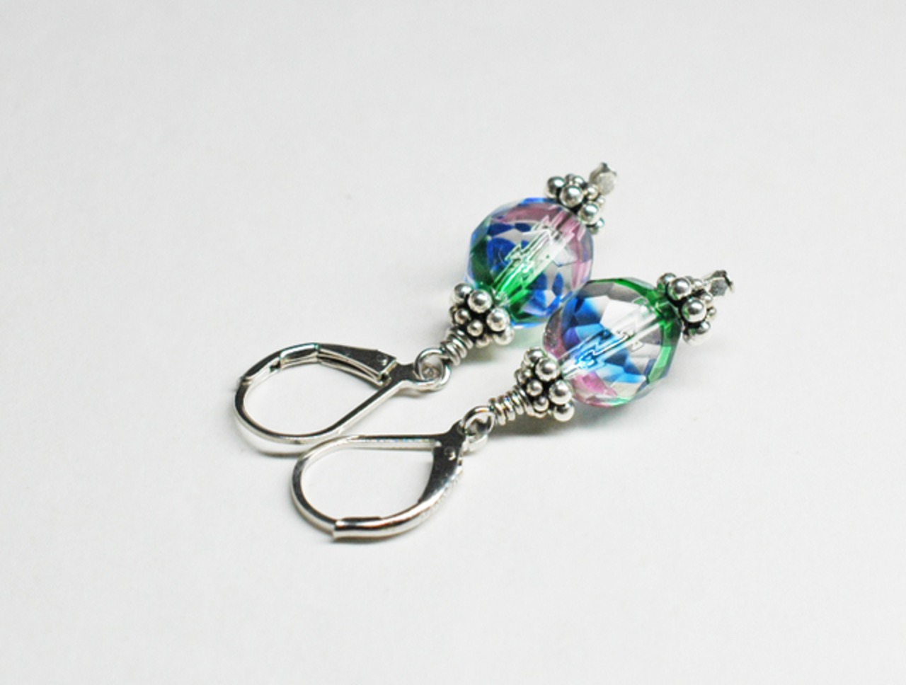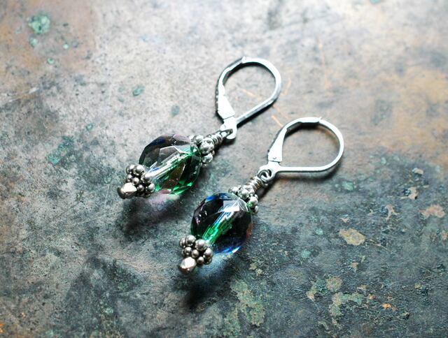 アイリスガラスと呼ばれるチェコ産のヴィンテージビーズの一粒ピアスです。