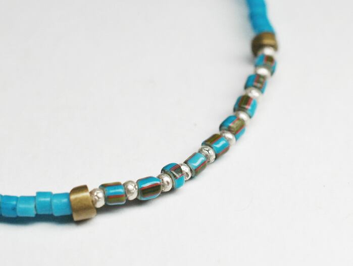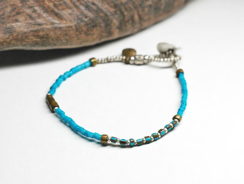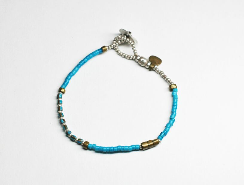 ターコイズブルーのホワイトハーツとoldオリッサブラスを繋げただブレスです。