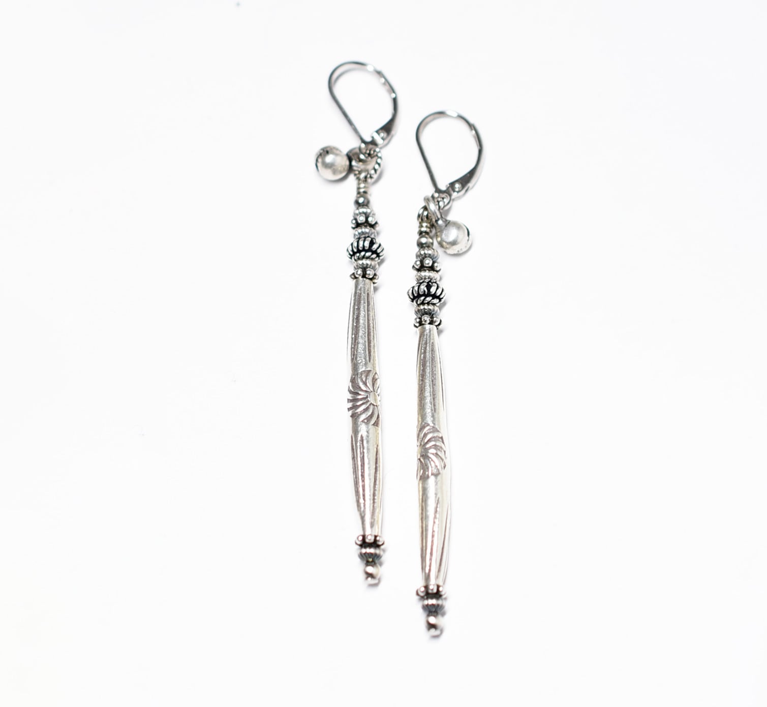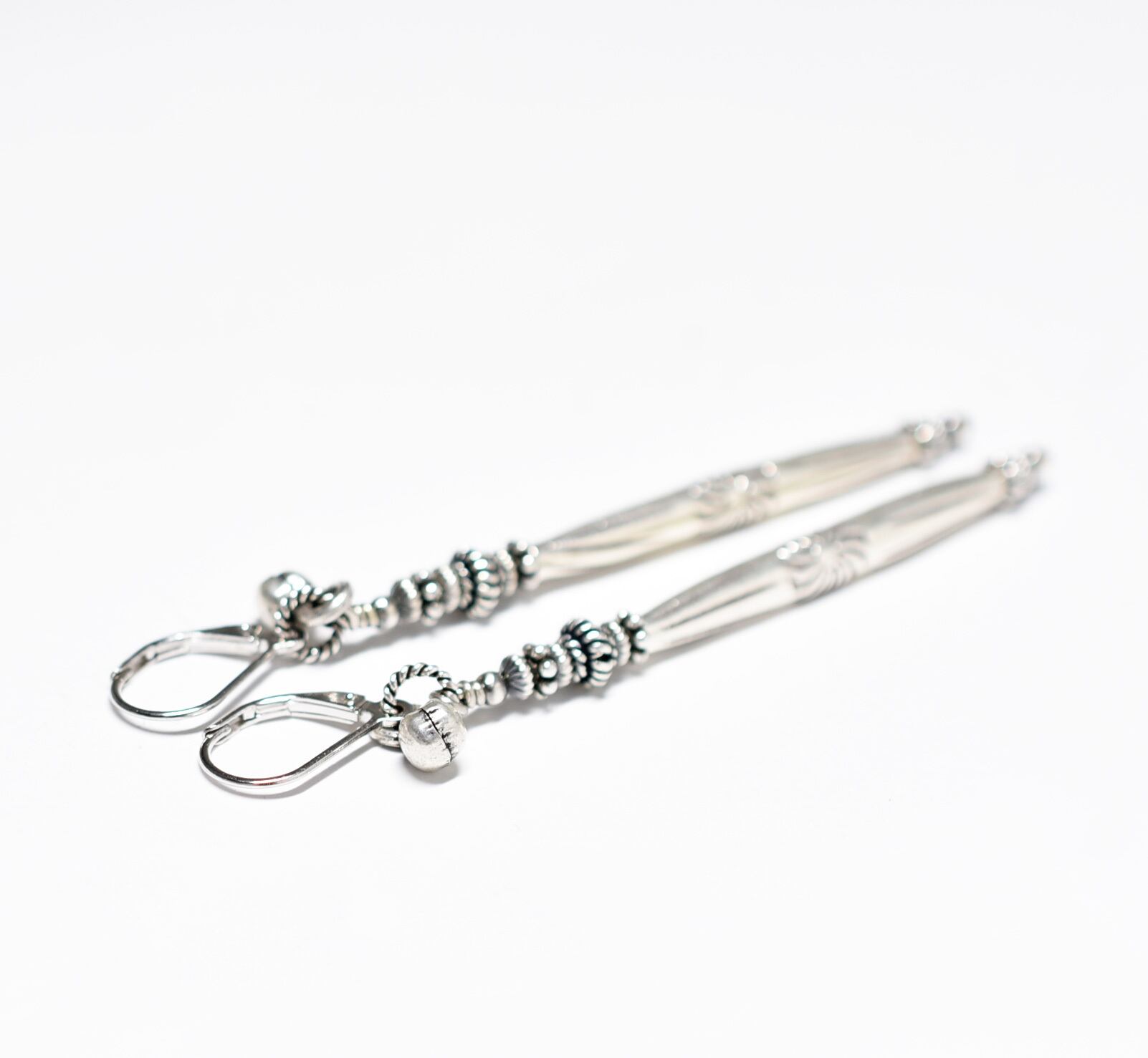 様々なシルバーが楽しめるオールシルバーのスリムで長めのピアスです。