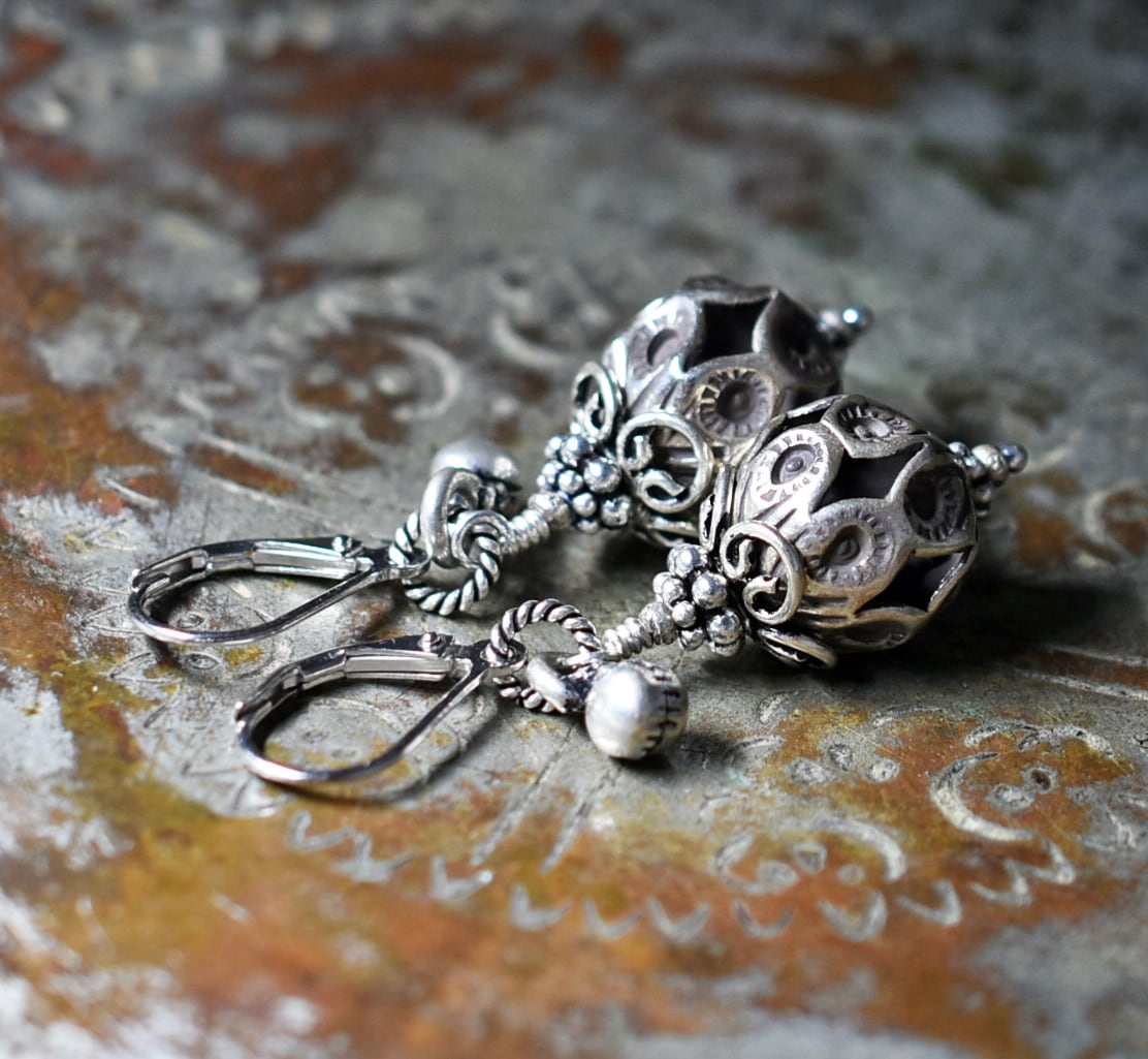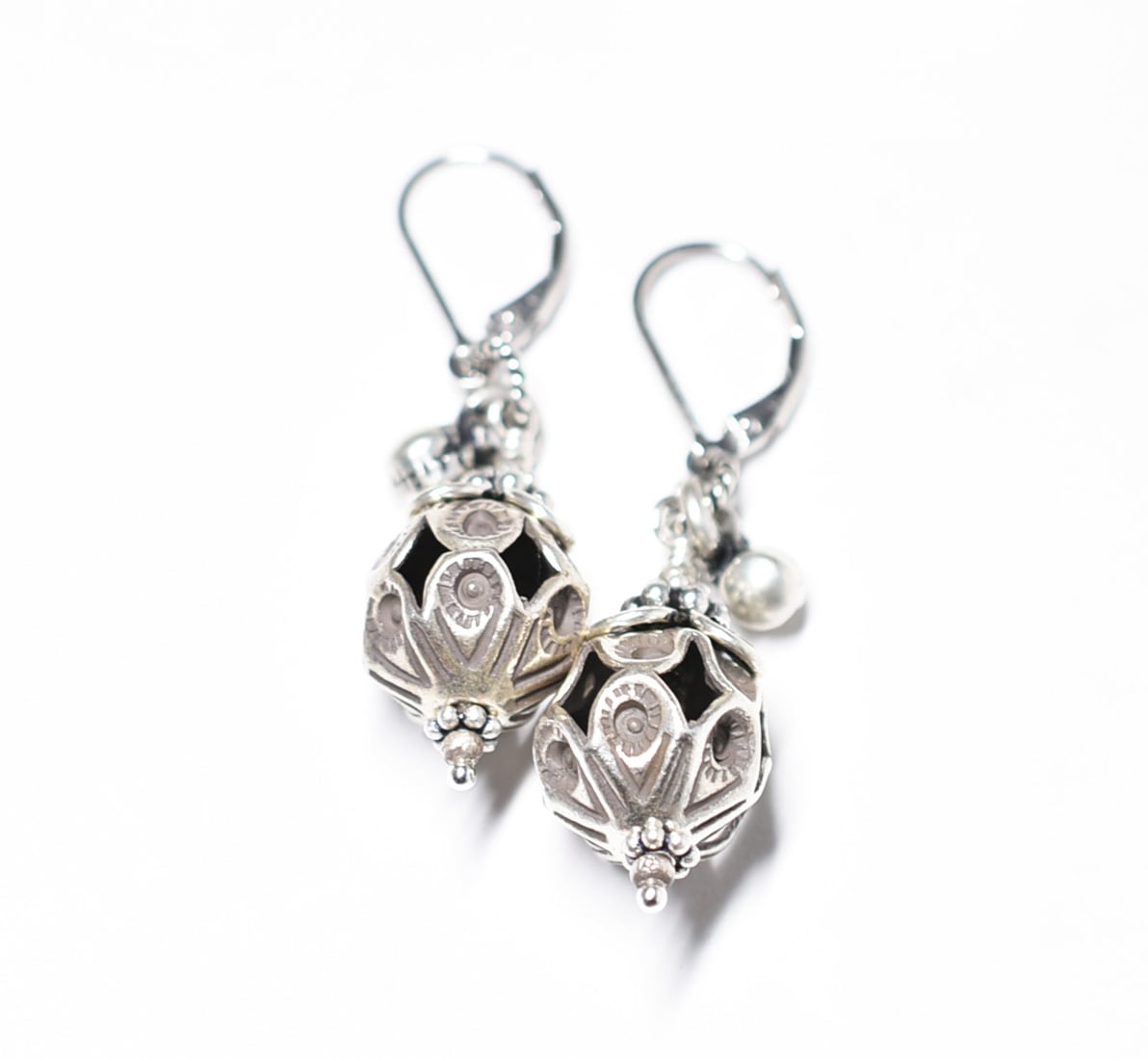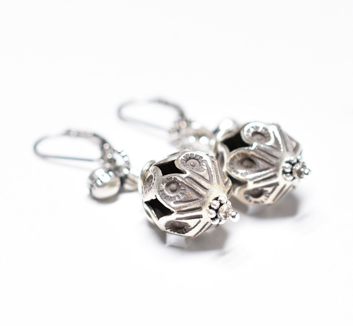 鳥かごの様なコロンとしたビーズはカレンシルバーです。
