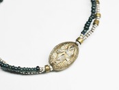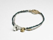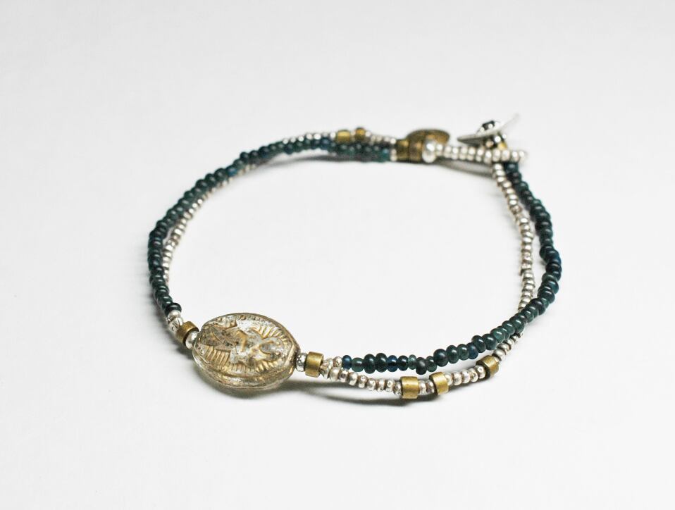 デッドストックのロザリオパーツを、インディゴブルーのアンティークビーズと小さなカレンシルバーで繋いだ2連ブレスです。
