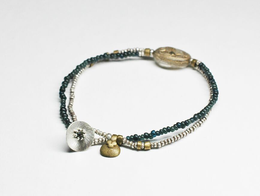 素材:カレンシルバー、ガラス、真鍮、ロウビキ紐