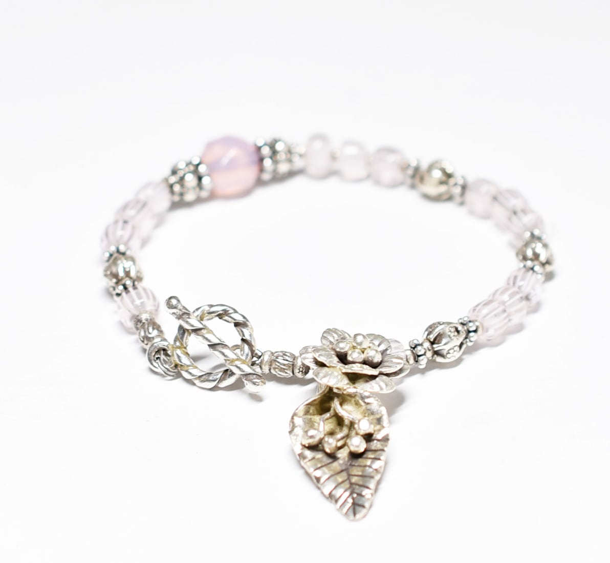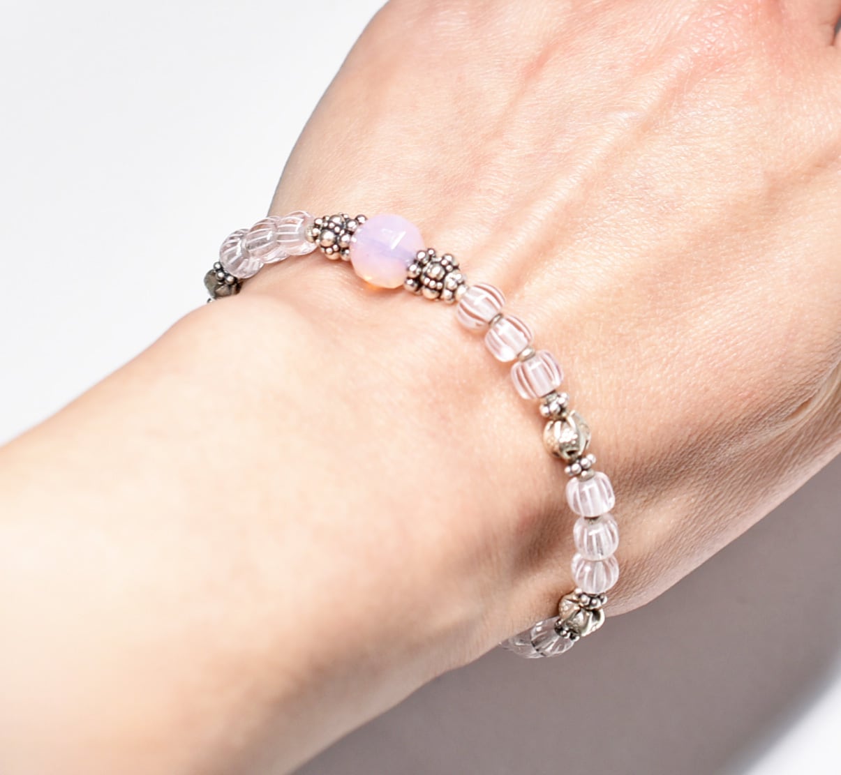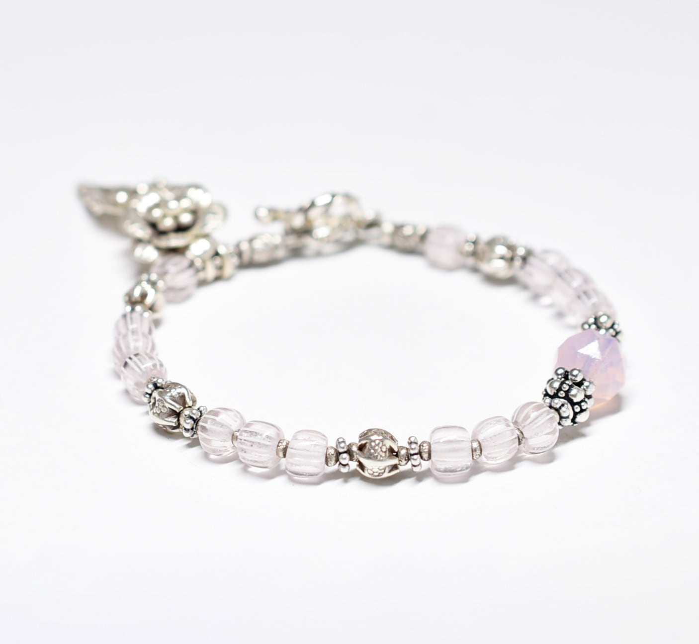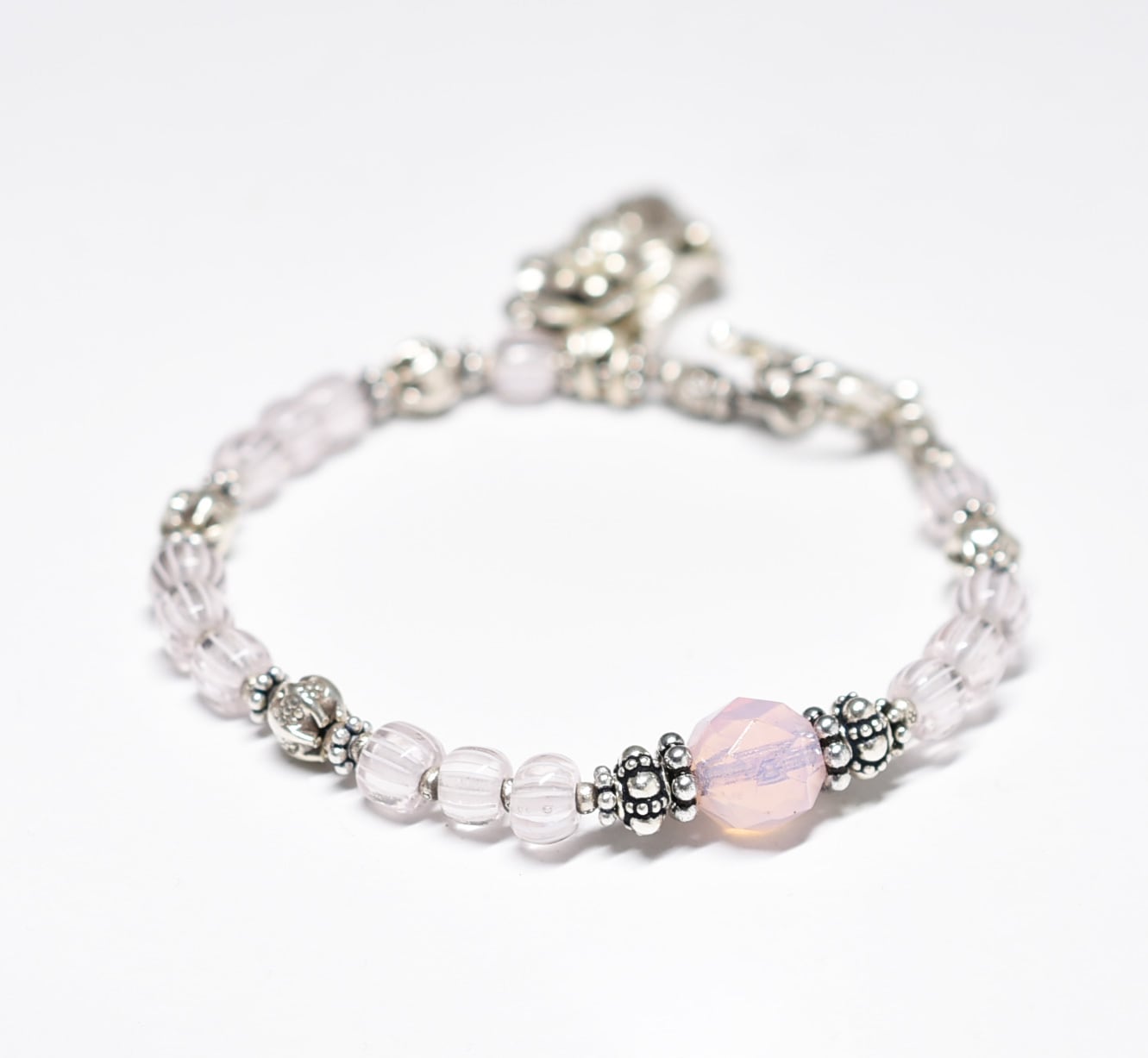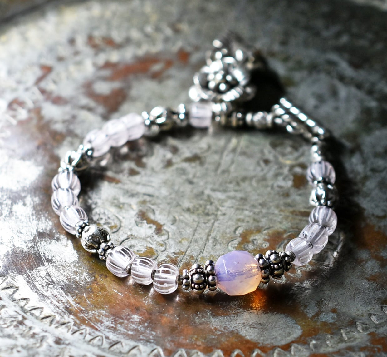 ピンクオパールヴィンテージボヘミアビーズとグーズベリー、カレンシルバーのブレス