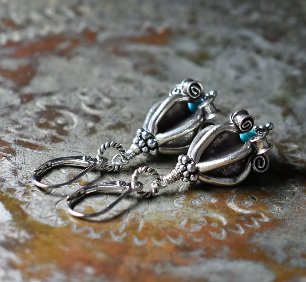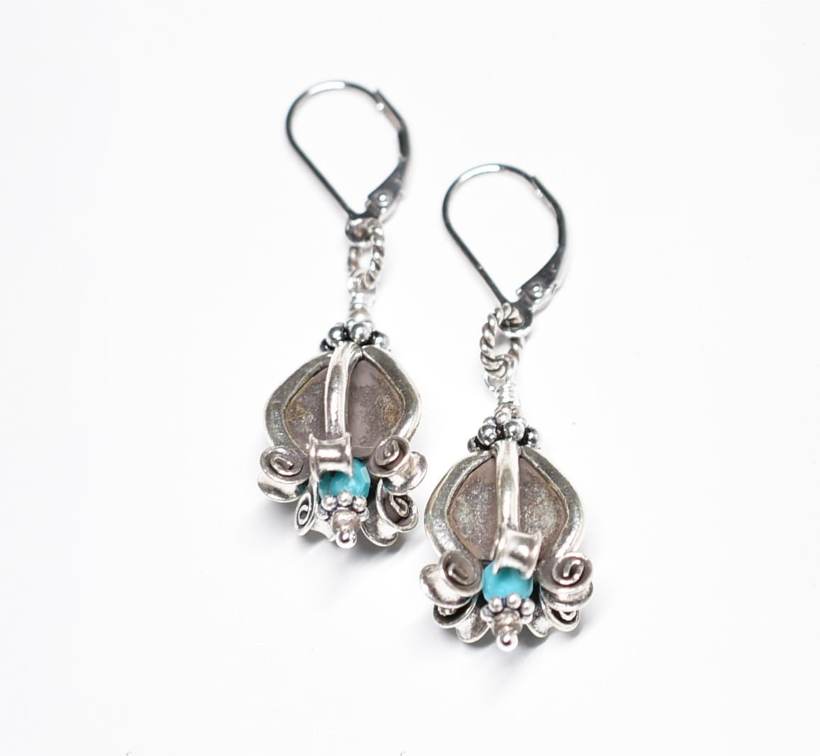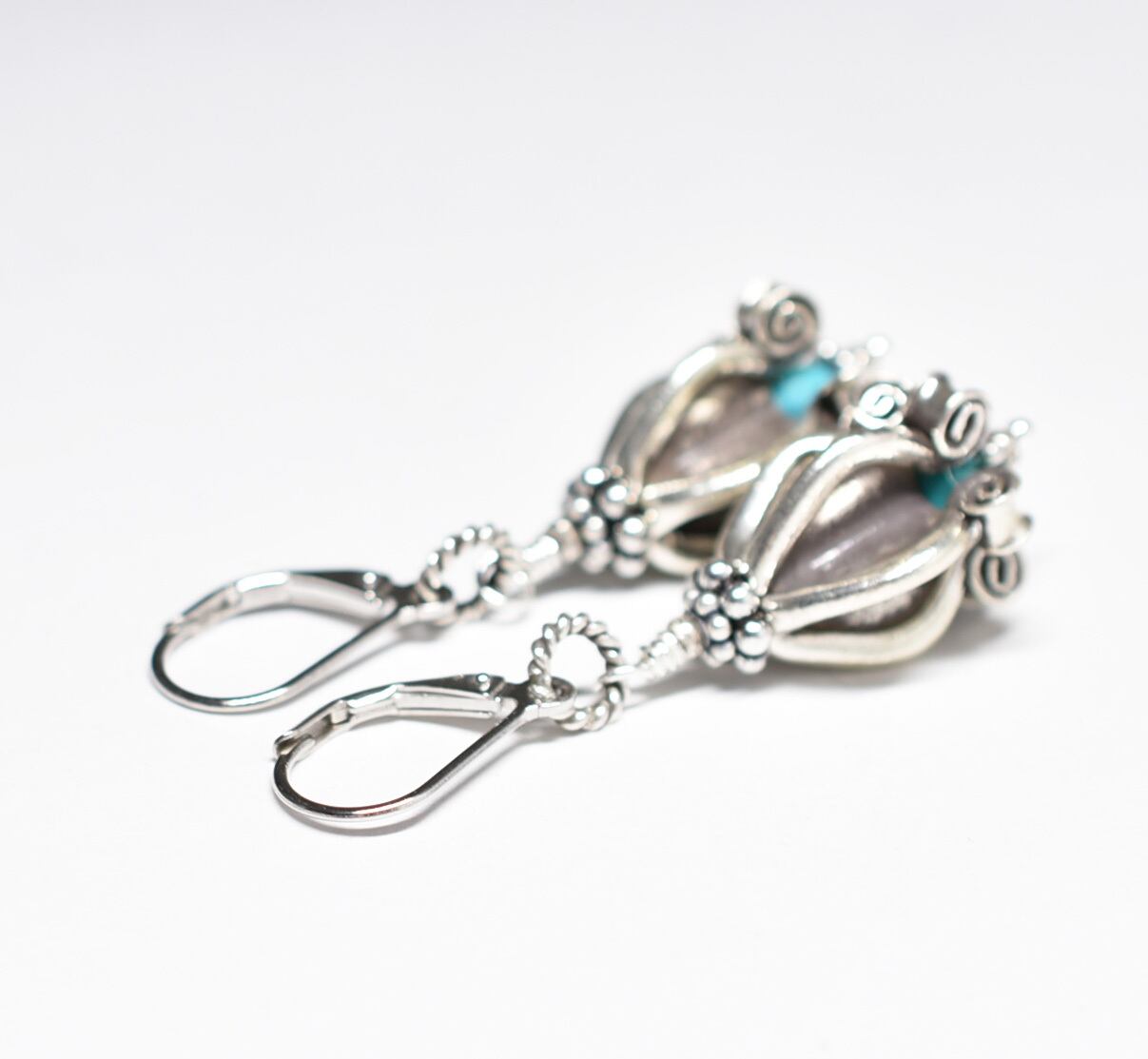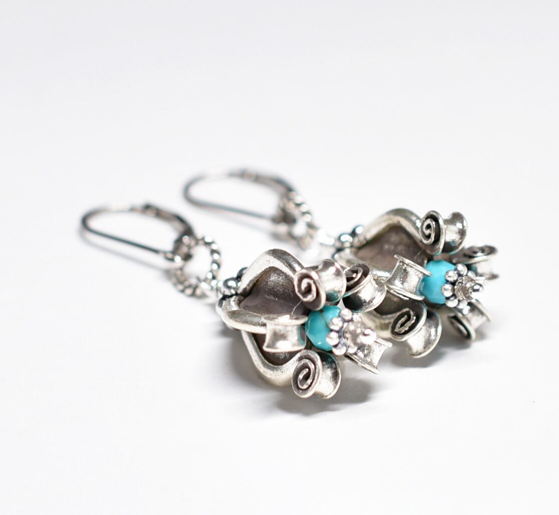 ドークラックカレンシルバー、ターコイズを繋いだピアスです。