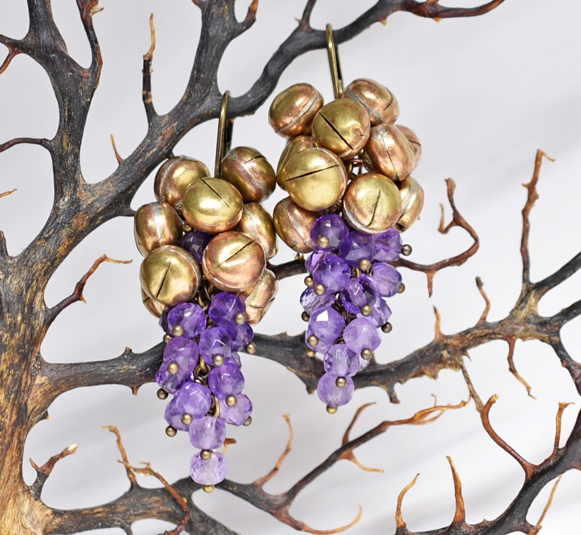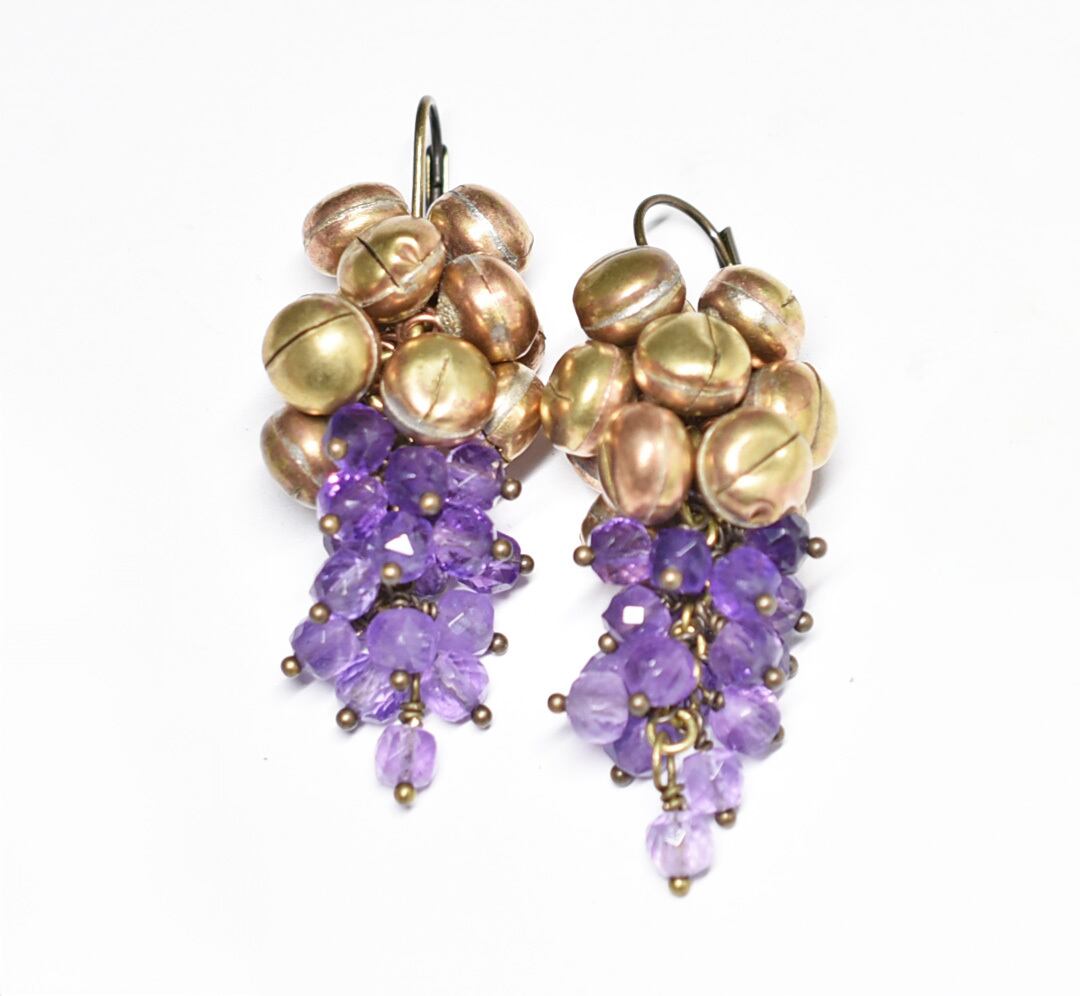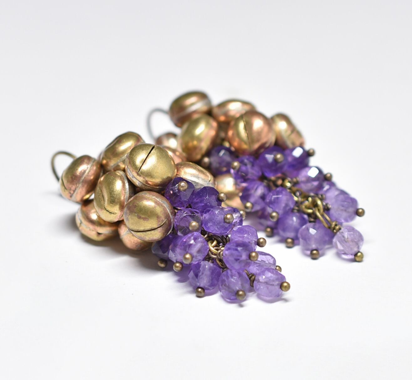 たわわな鈴とアメジストを繋いだピアスです。(000680)