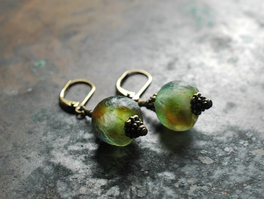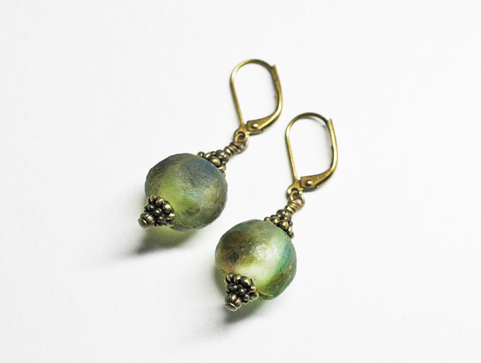 ガーナから届いた再生ガラスビーズを使ったピアスです・