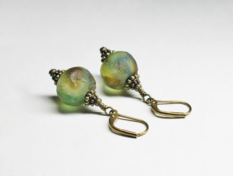 アースカラーアフリカンパウダーグラスビーズのピアス