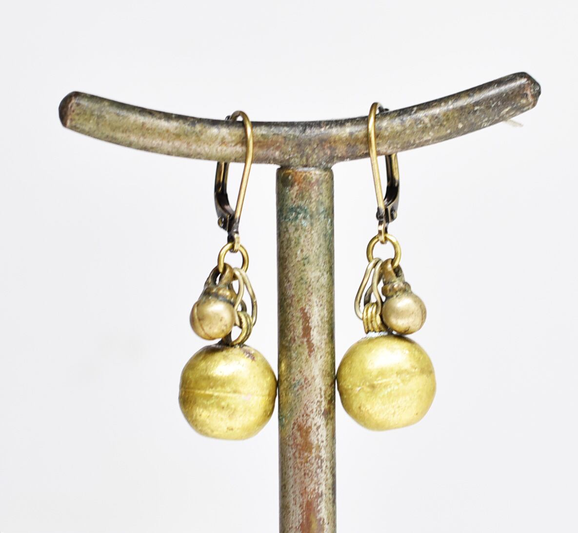 満月まん丸メタルパーツとチェーン、民族鈴のピアス