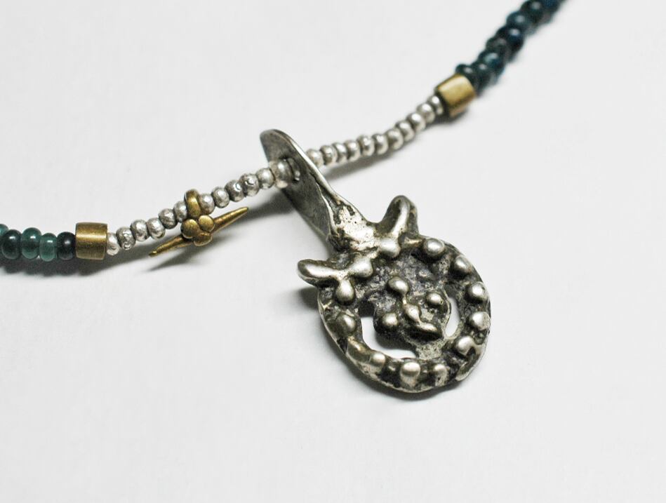 素材:ガラス、古シルバー、カレンシルバー、真鍮、ロウビキ紐