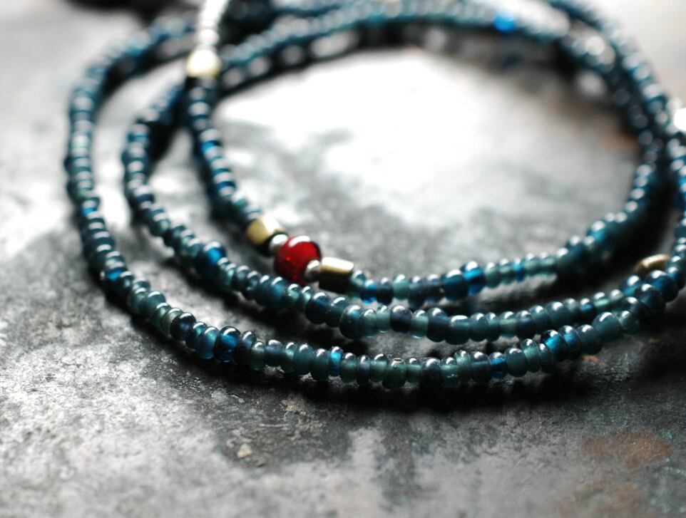 インディゴブルーのビーズはインドパシフィックビーズと呼ばれるアンティークビーズです。