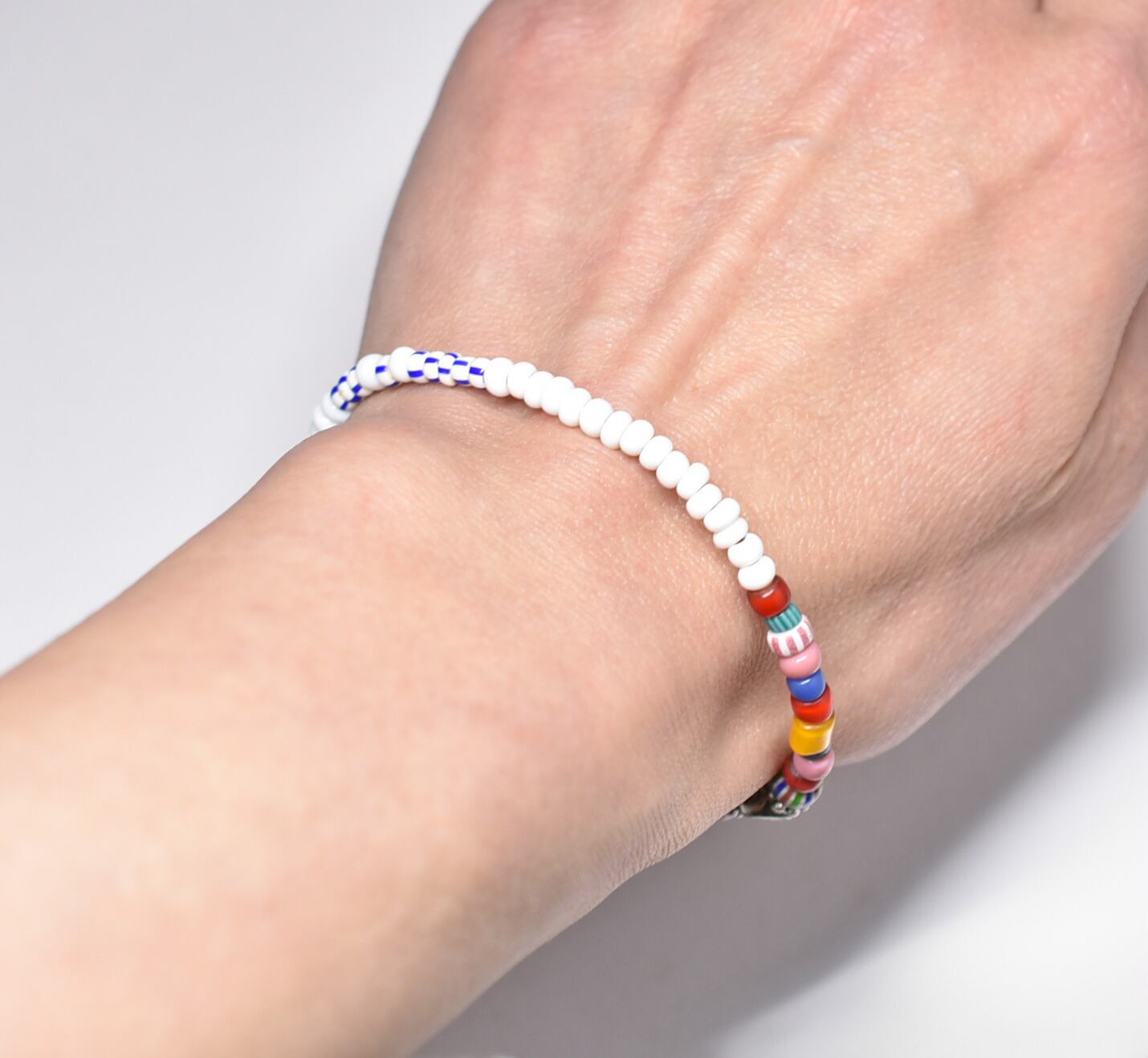 ホワイト&多彩アンティークヴェネチアビーズなどを繋いだブレスです。