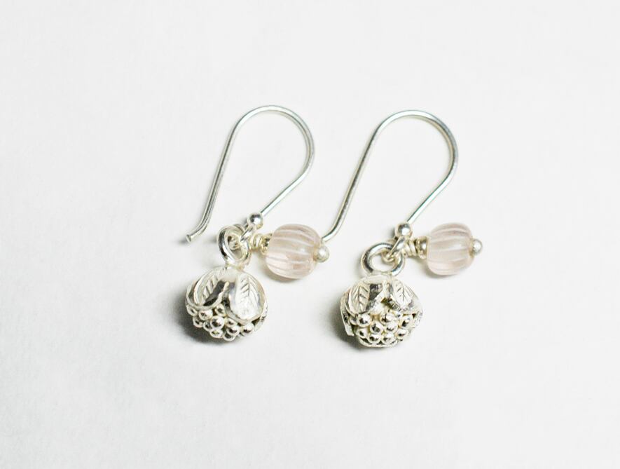 ツブツブがたくさんの、花のような実のようなチャームは少しいぶし銀な感じです。コロンとしていて可愛らしいです!