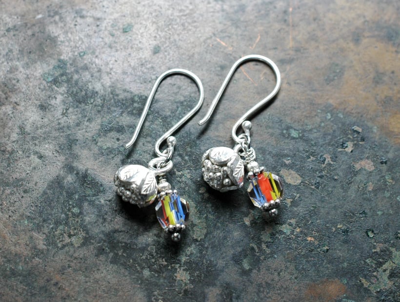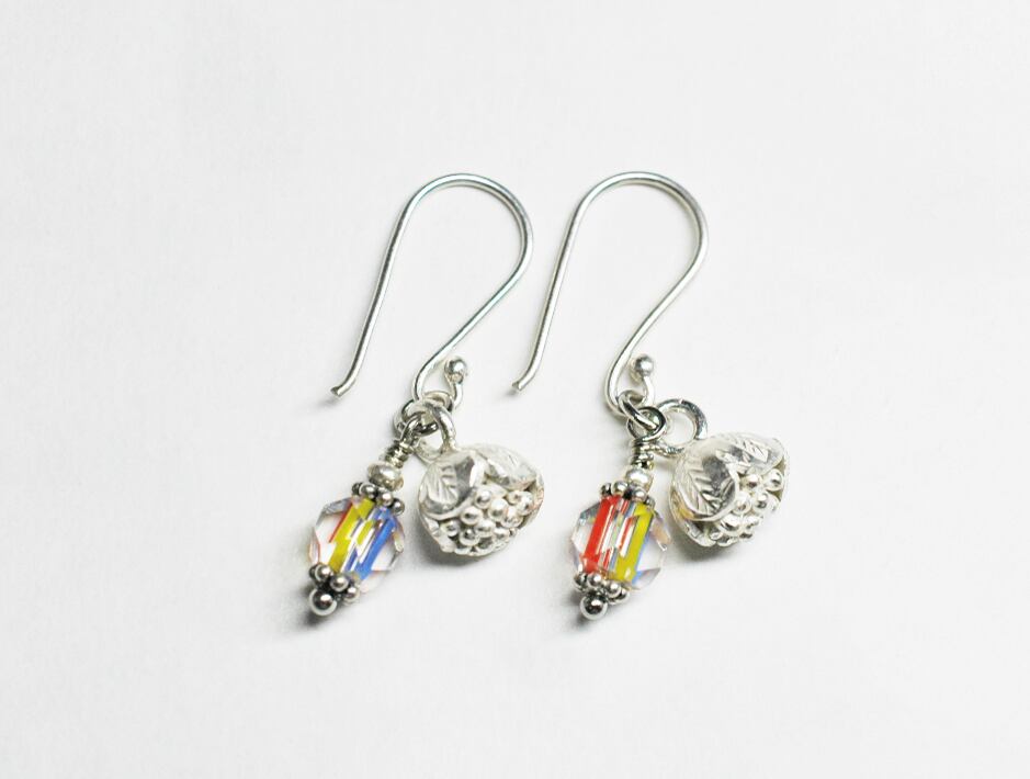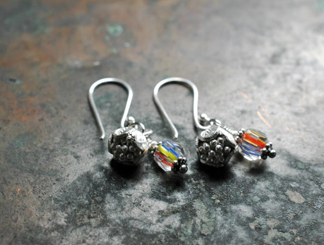カレンシルバーの丸い花とカットが美しいヴィンテージビーズのピアス