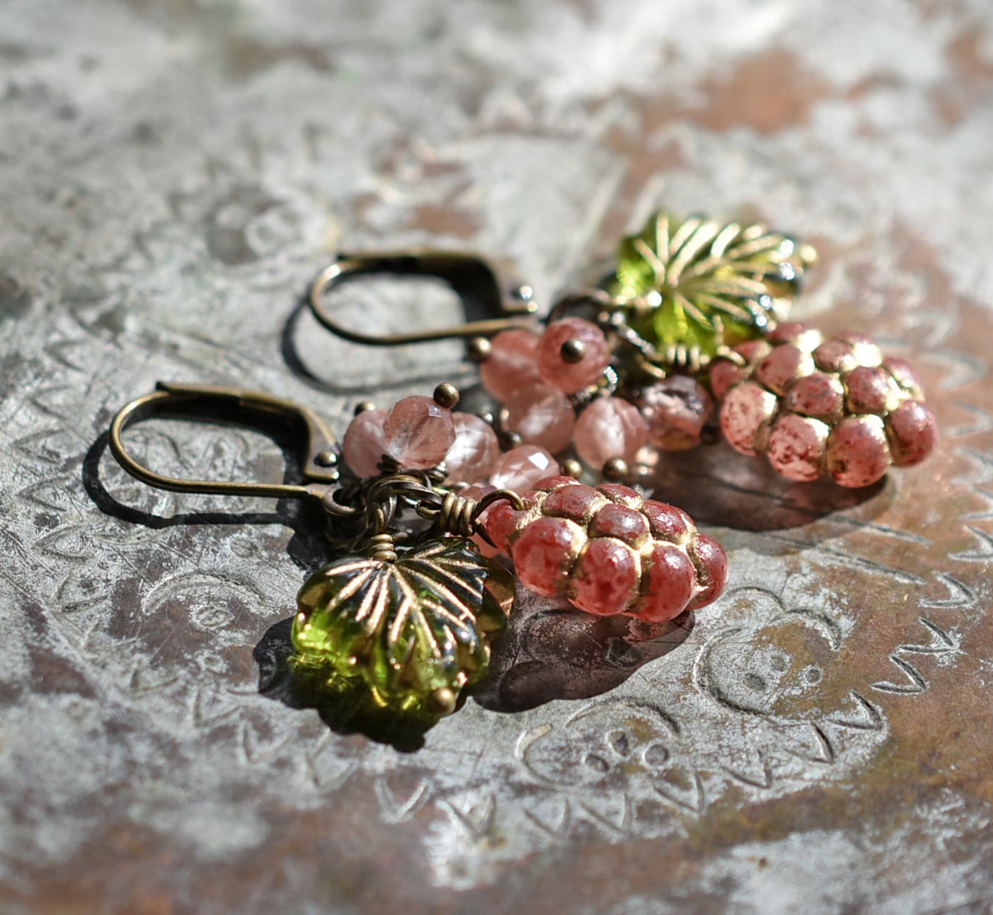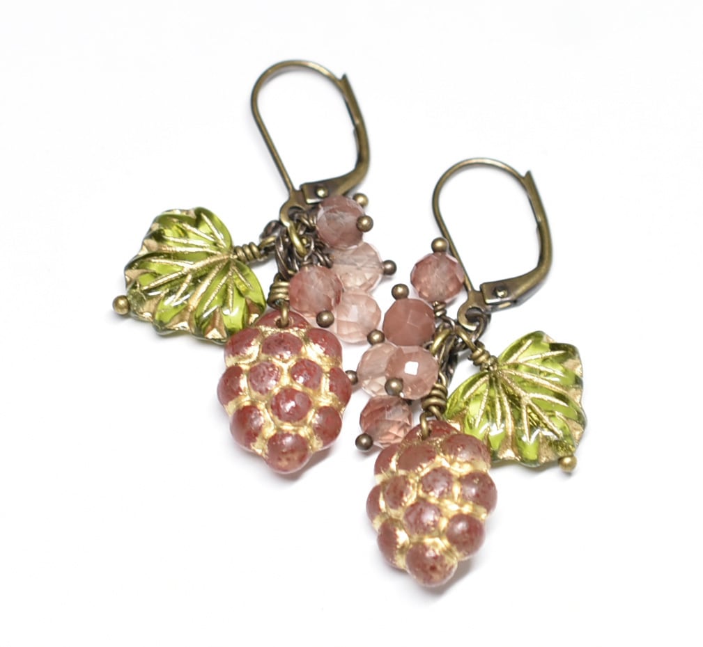 葡萄&葉っぱチェコビーズとアンデシンのピアス
