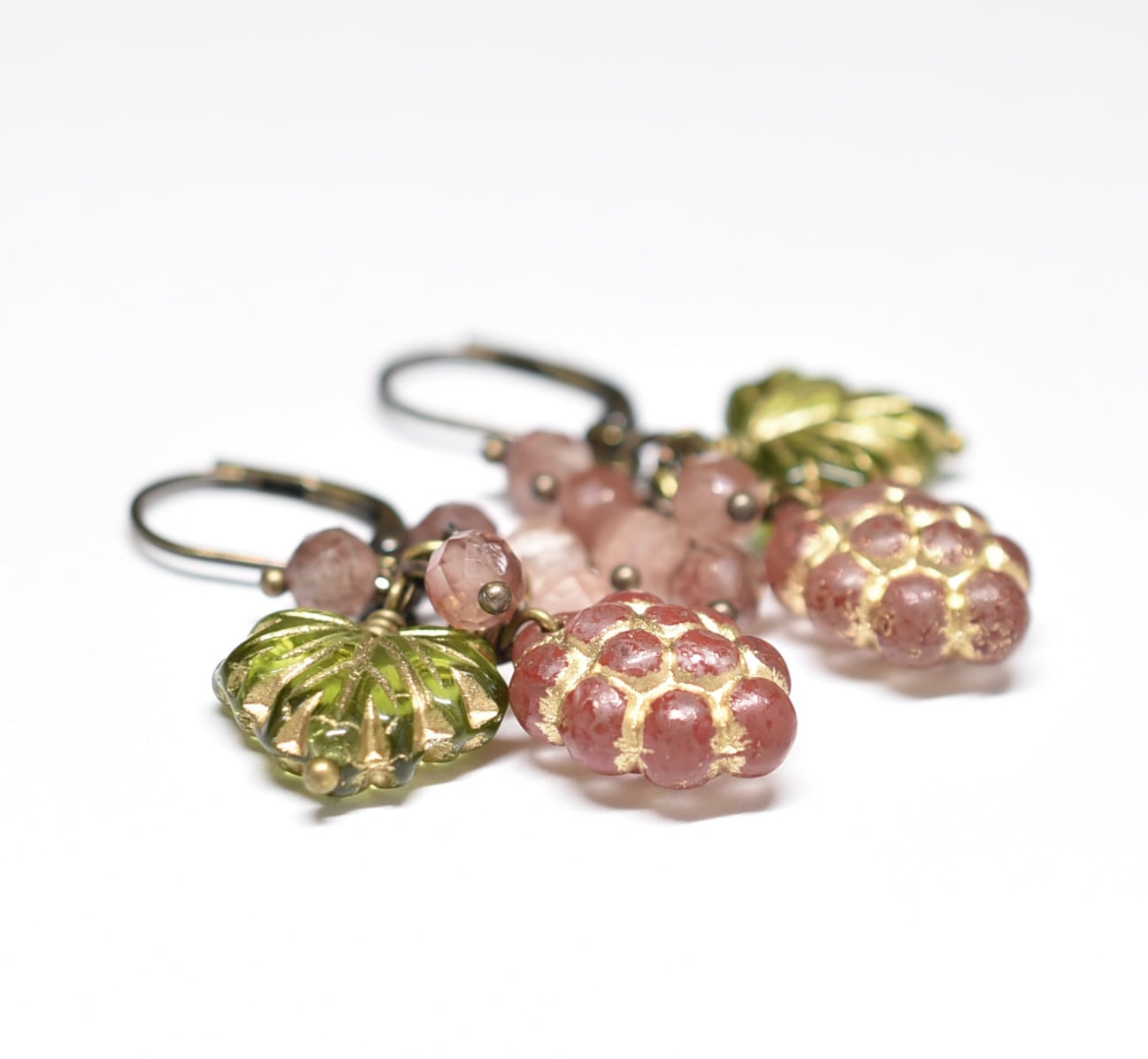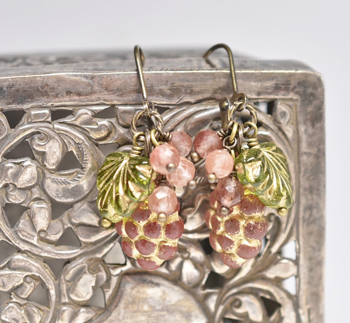 葡萄&葉っぱチェコビーズとアンデシンを繋いだピアスです。