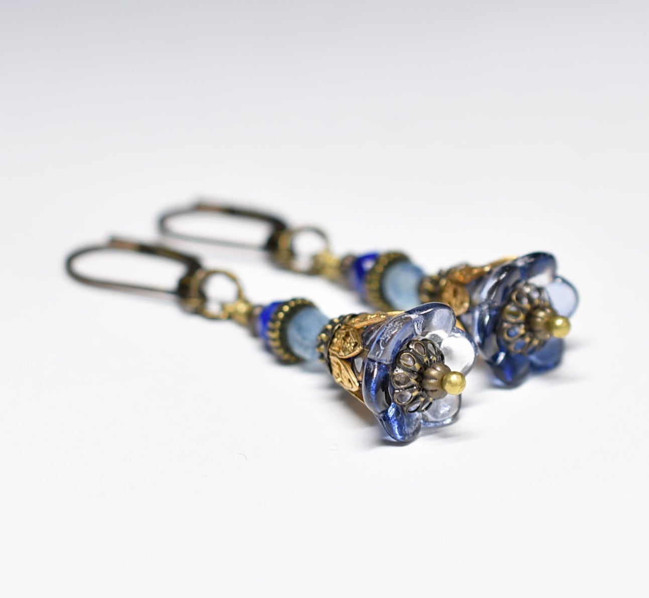 お花japanヴィンテージビーズとラピス&アクアマリンを繋いだピアスです。