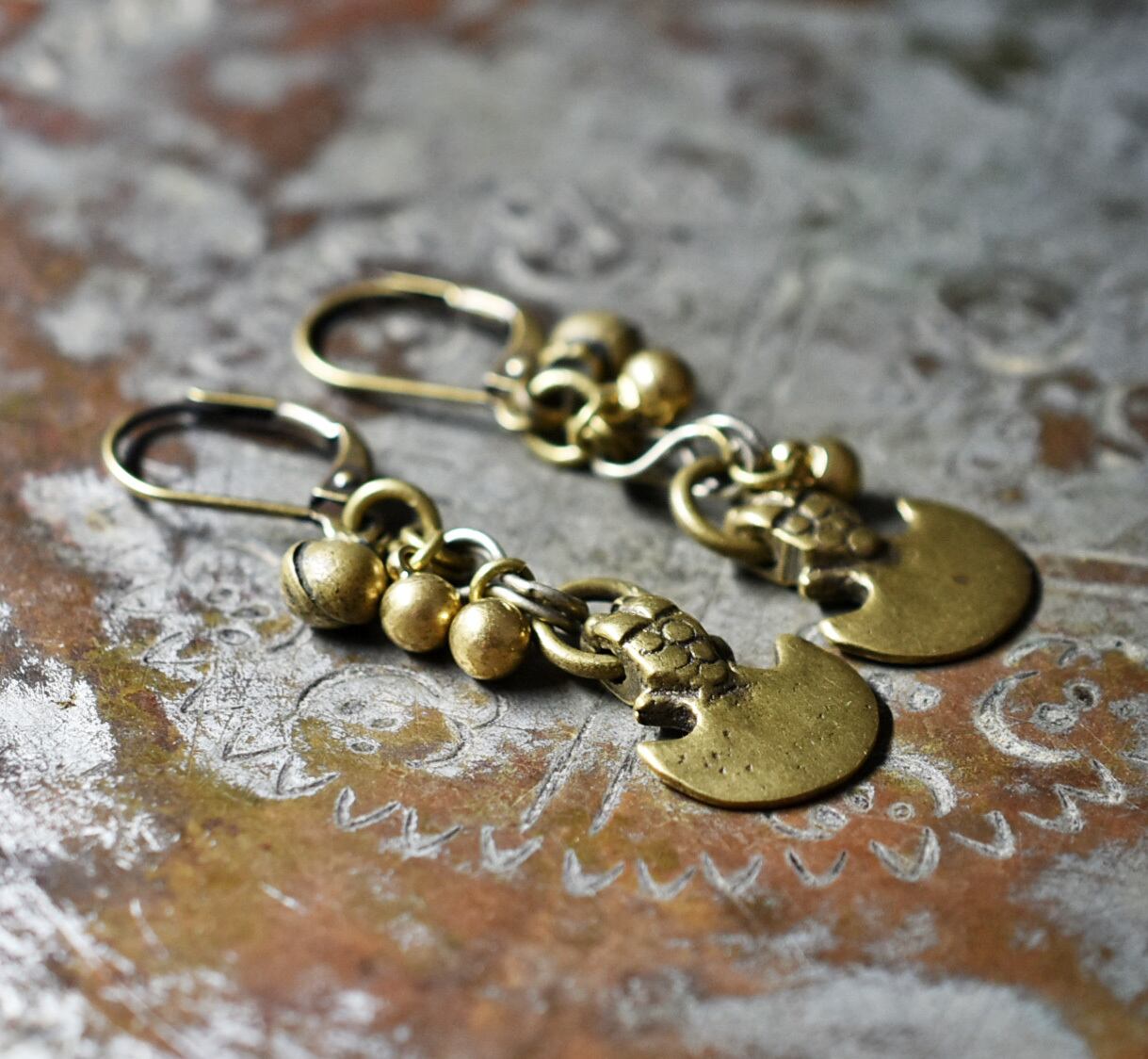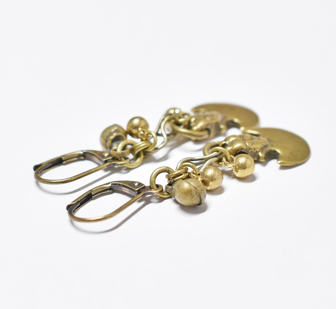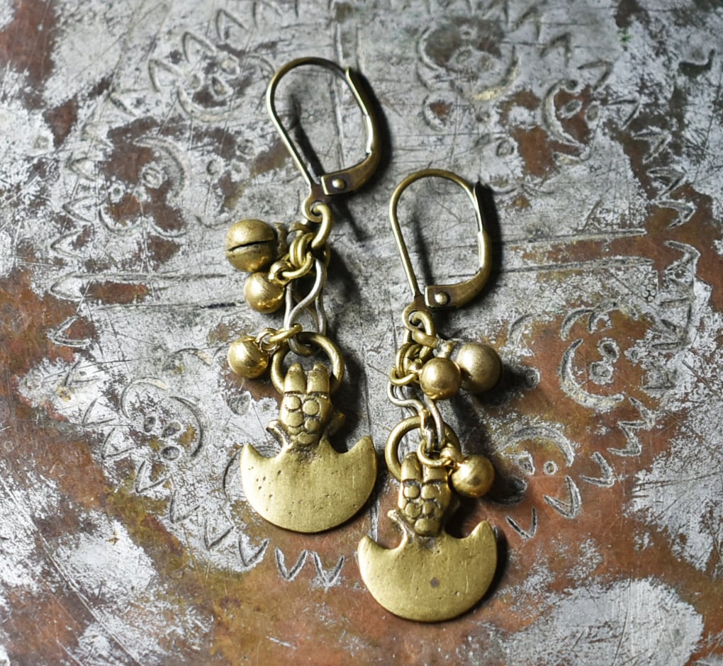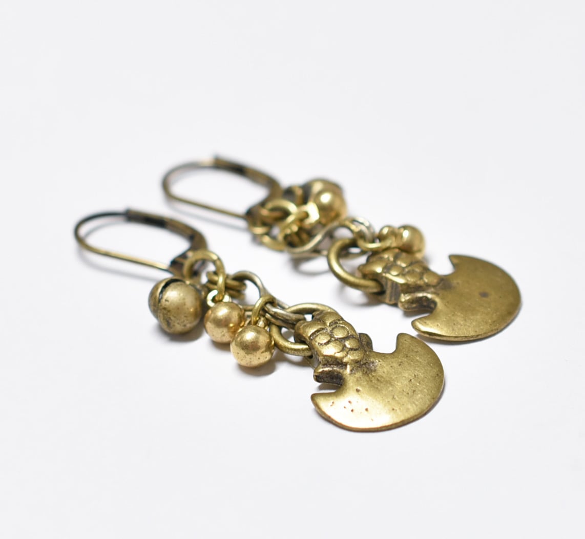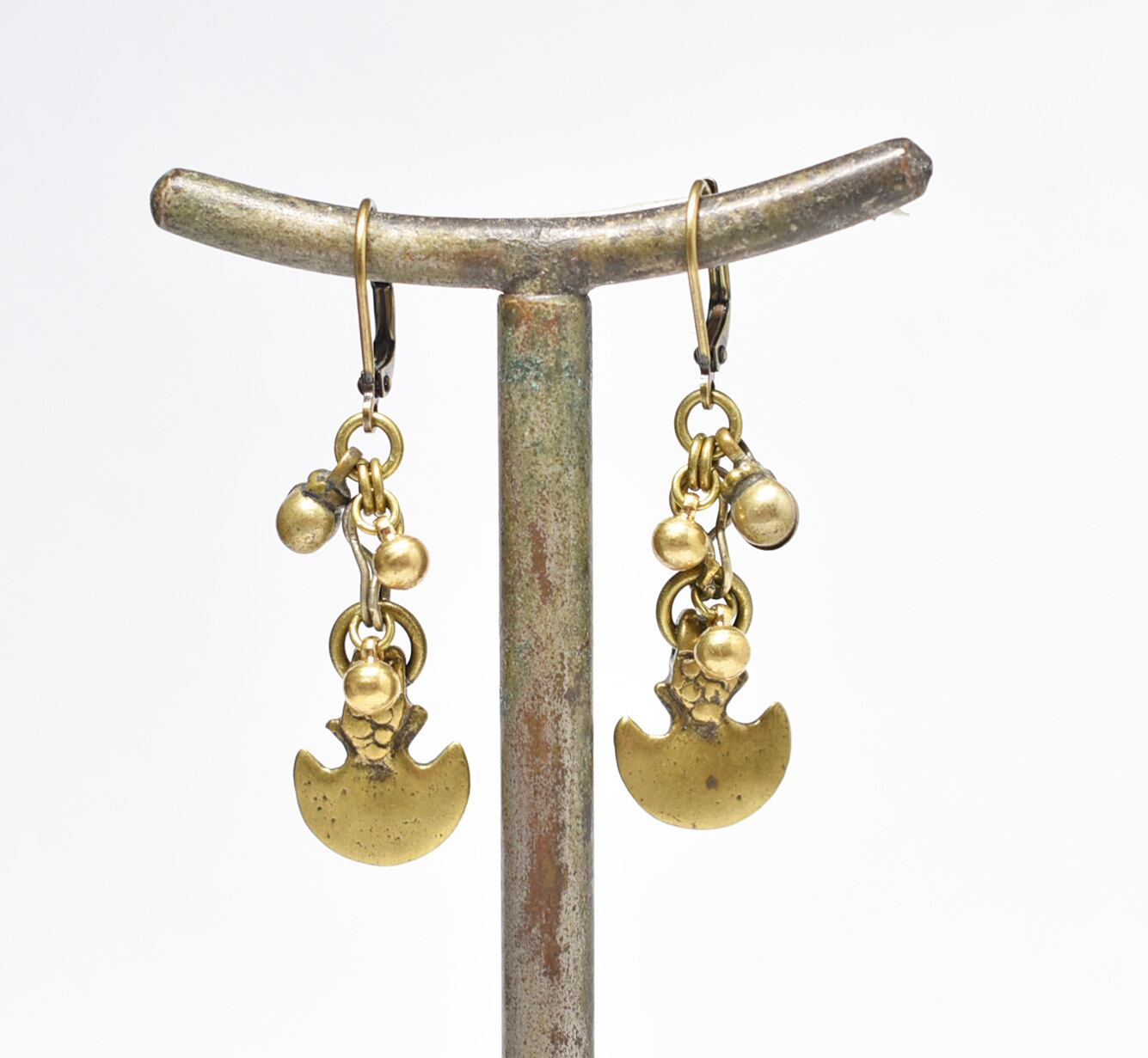 錨型oldインドブラスとまん丸インドブラス、民族鈴を繋いだピアスです。