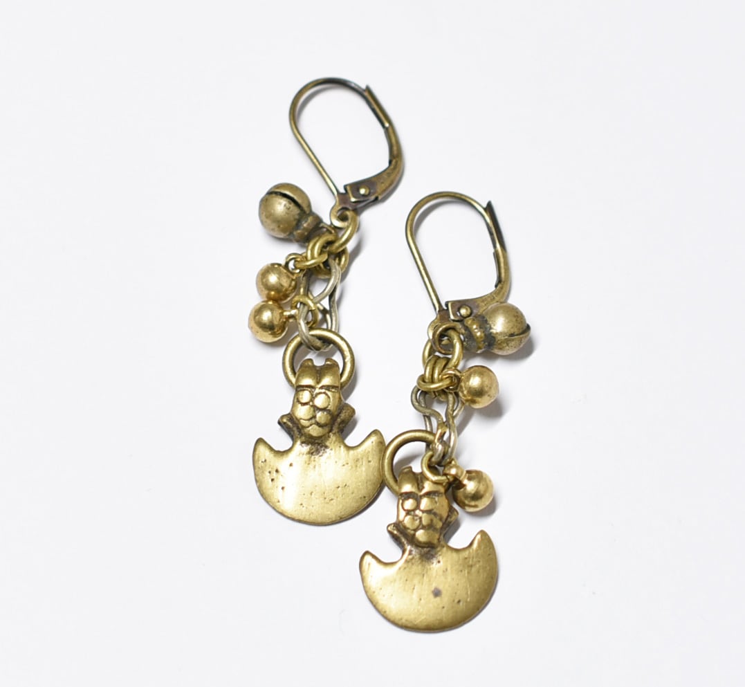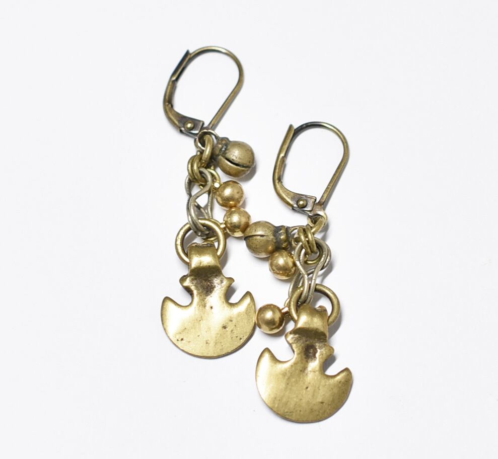 錨型oldインドブラスとまん丸インドブラス、民族鈴のピアス