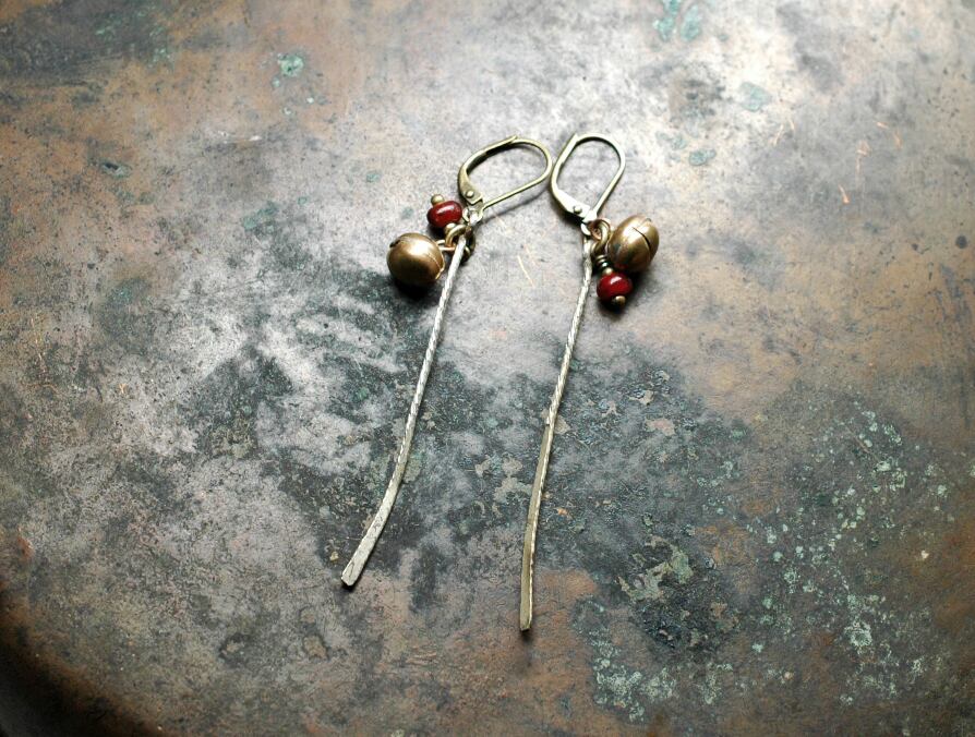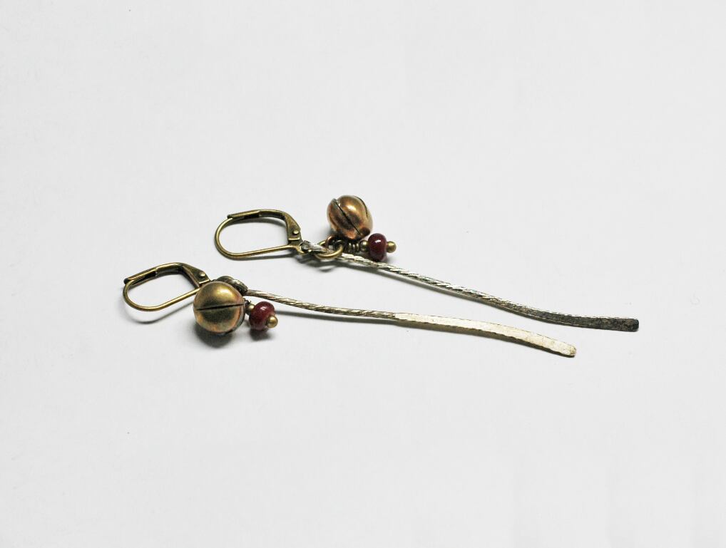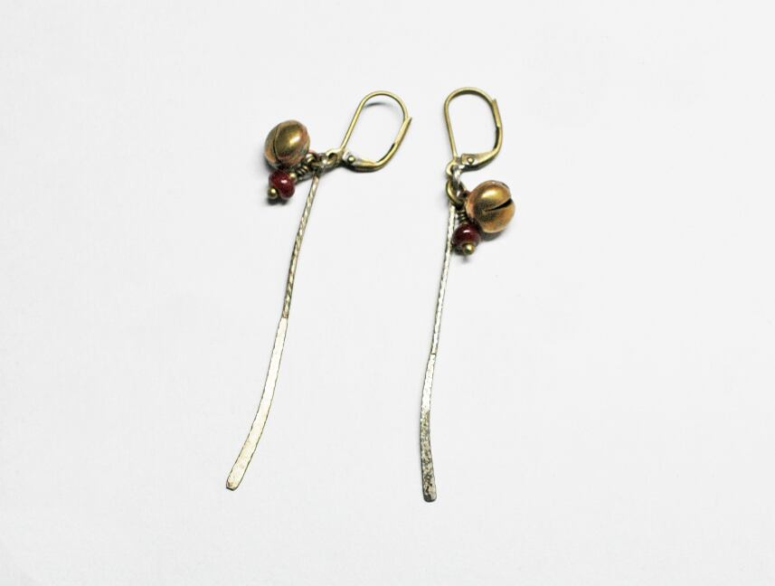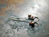 ミャオ族の細長いパーツと、鈴、一粒アンティークのベネチアビーズを入れたピアスです。