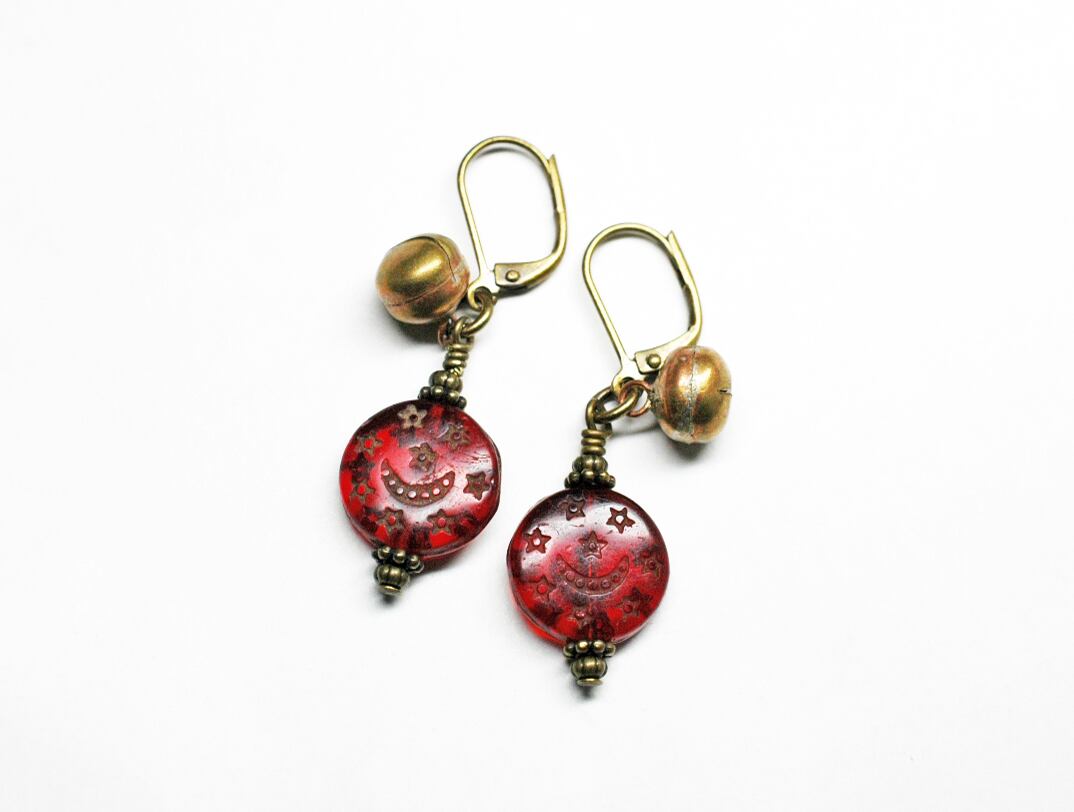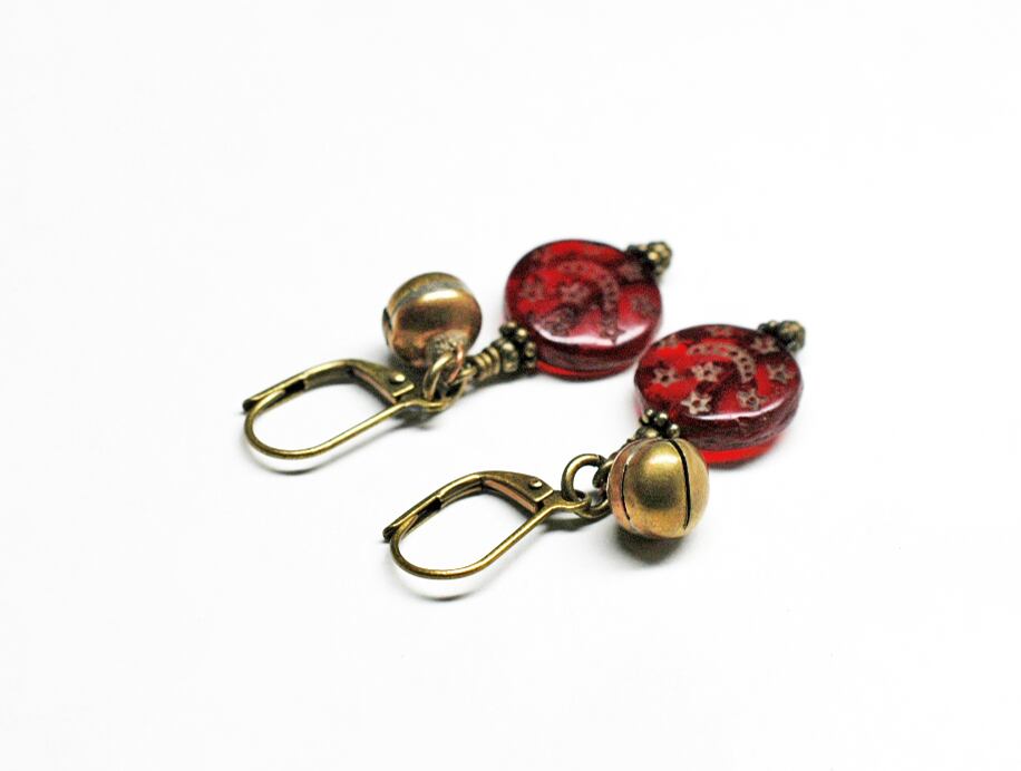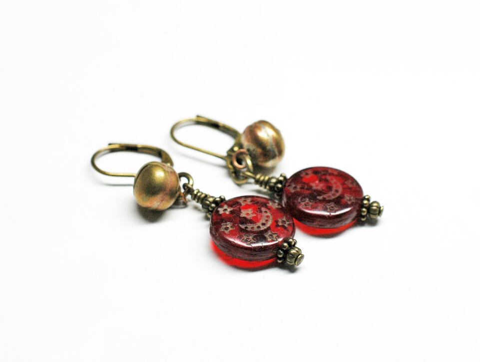 月と星の模様が施された聖者のビーズと、鈴を繋いだピアスです。