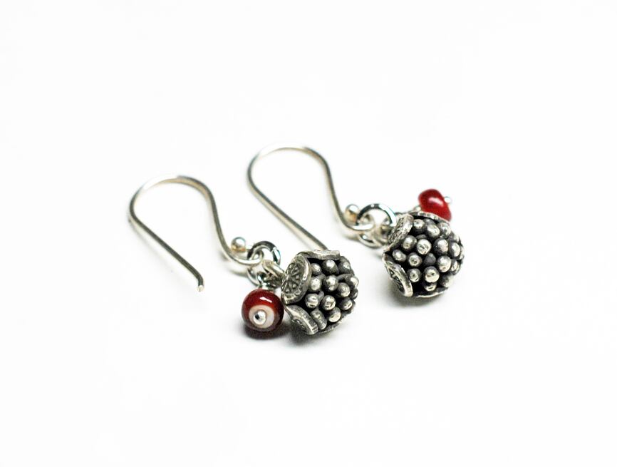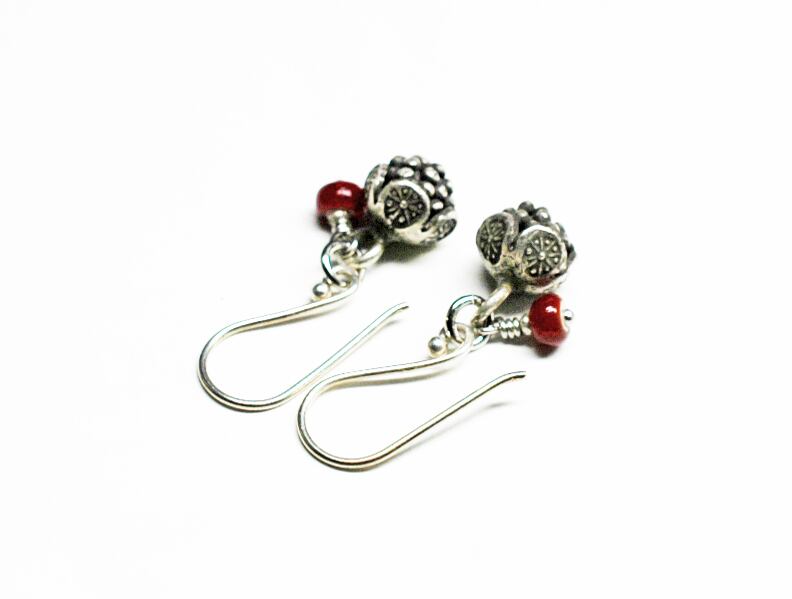 カレンシルバーの丸い花と一粒のアンティークビーズピアス(再販)