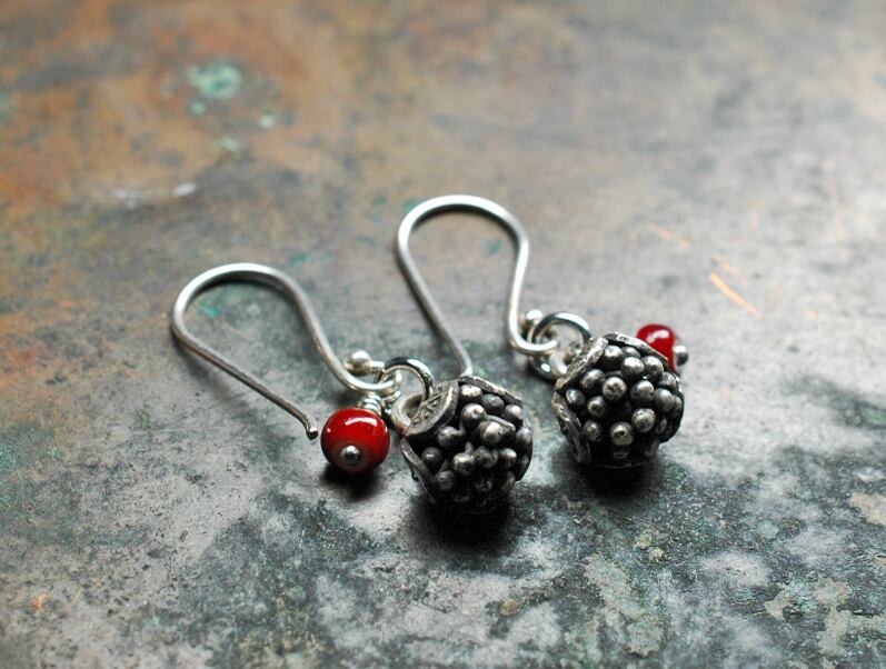 カレンシルバーチャーム、一粒アンティークビーズを使ったピアスです。