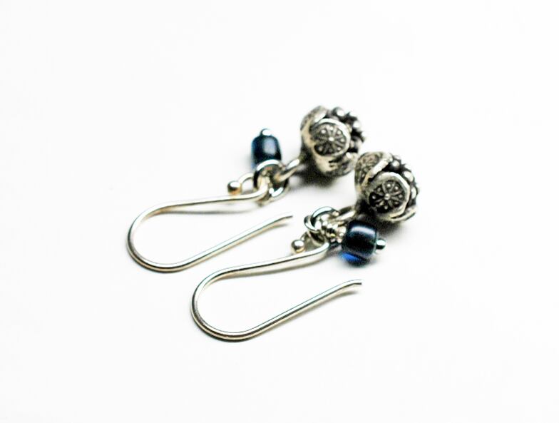 カレンシルバーチャーム、一粒アンティークビーズを使ったピアスです。