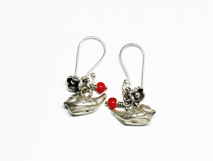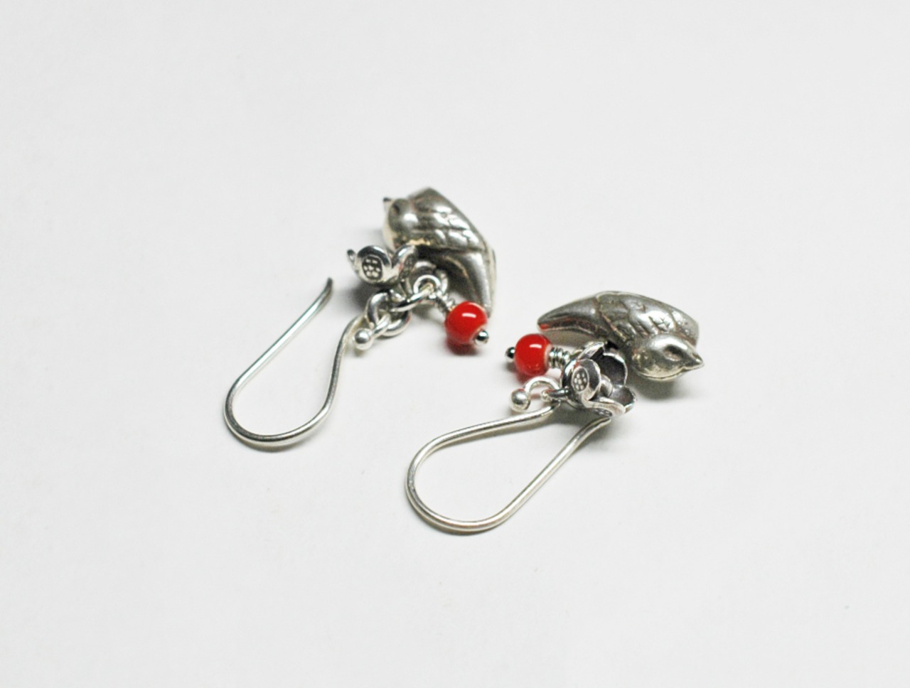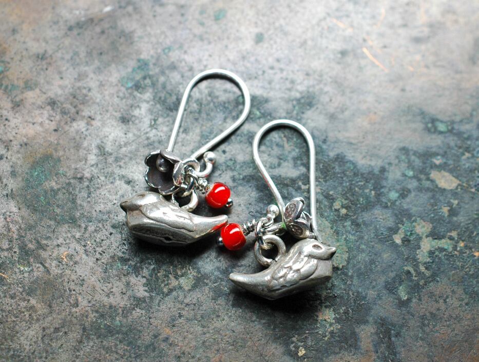 小鳥とお花、木の実のシルバーピアス