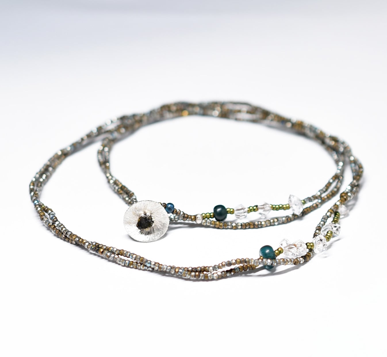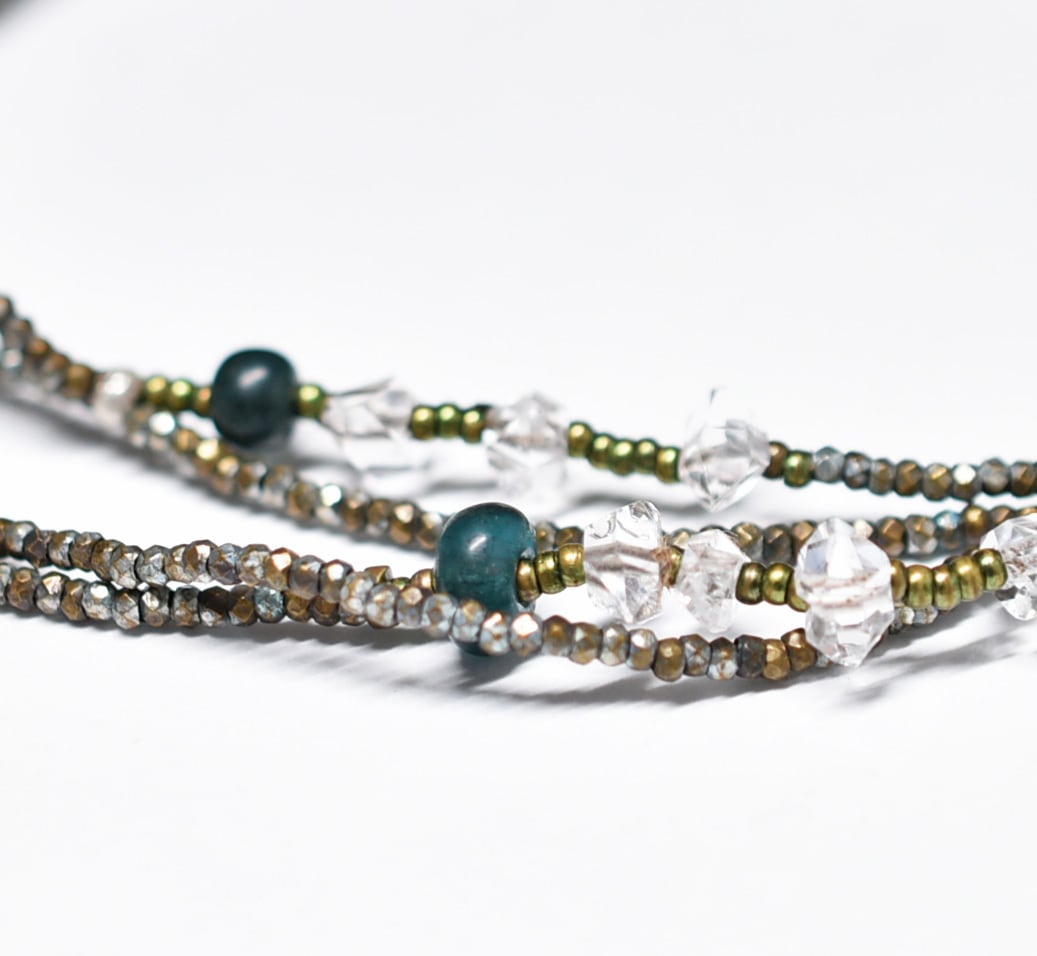 素材:メタルビーズ、ガラス、ハーキマーダイヤモンド、ロウビキ紐
