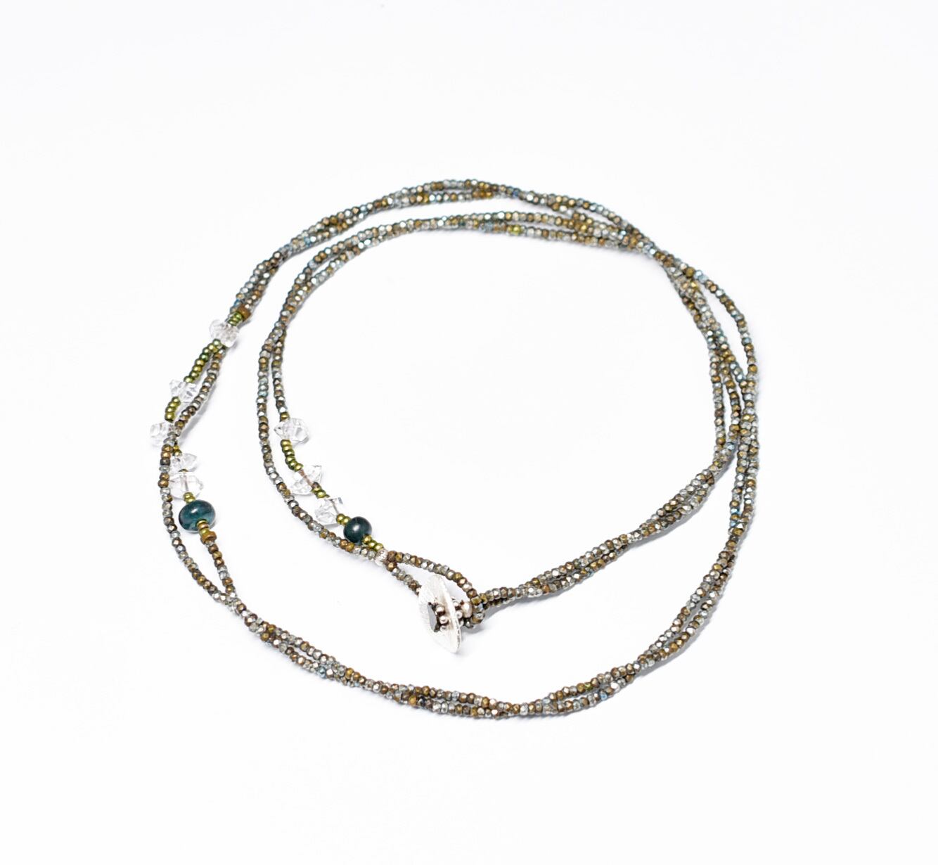 フランスアンティークカットメタルビーズとハーキマーダイヤモンド、インディゴブルービーズを繋いだ2連ネックレス です。