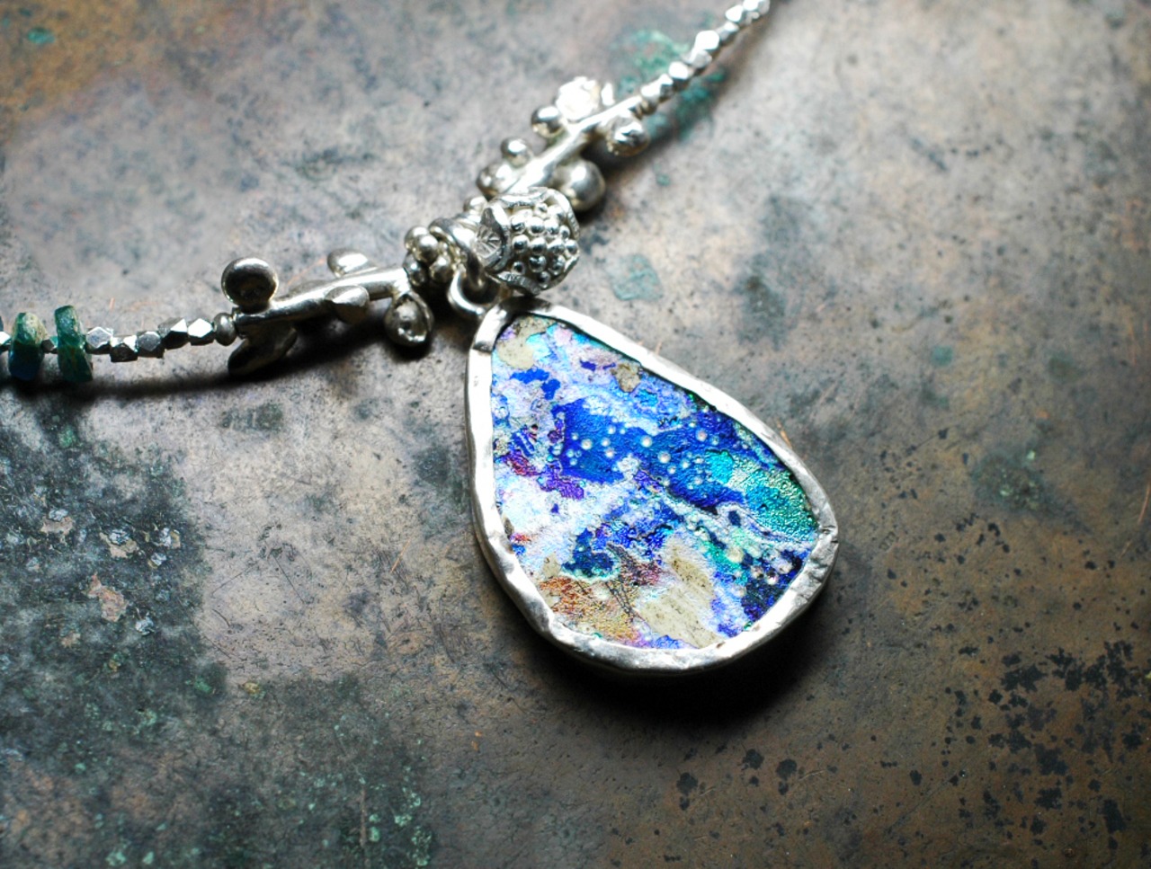 銀化の輝きがなくなっても古代のガラス自体の色を楽しめますので、育てる感覚で身に着けていただければ嬉しいです。