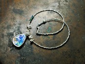 宇宙色銀化ローマングラスと煌めくカレンシルバーのネックレス