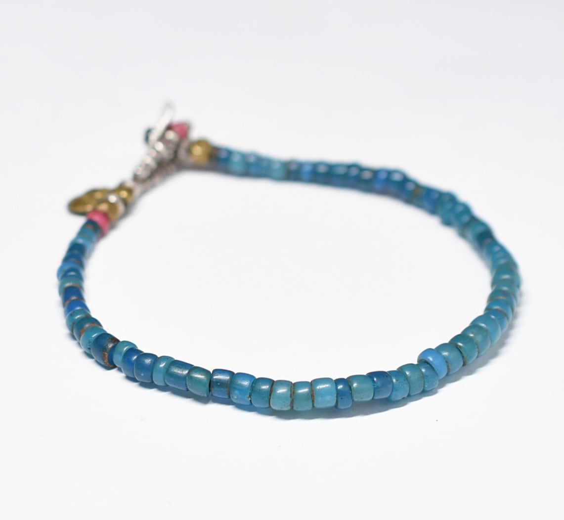 古いビーズの味わいを楽しめるシンプルなデザインのブレスです。