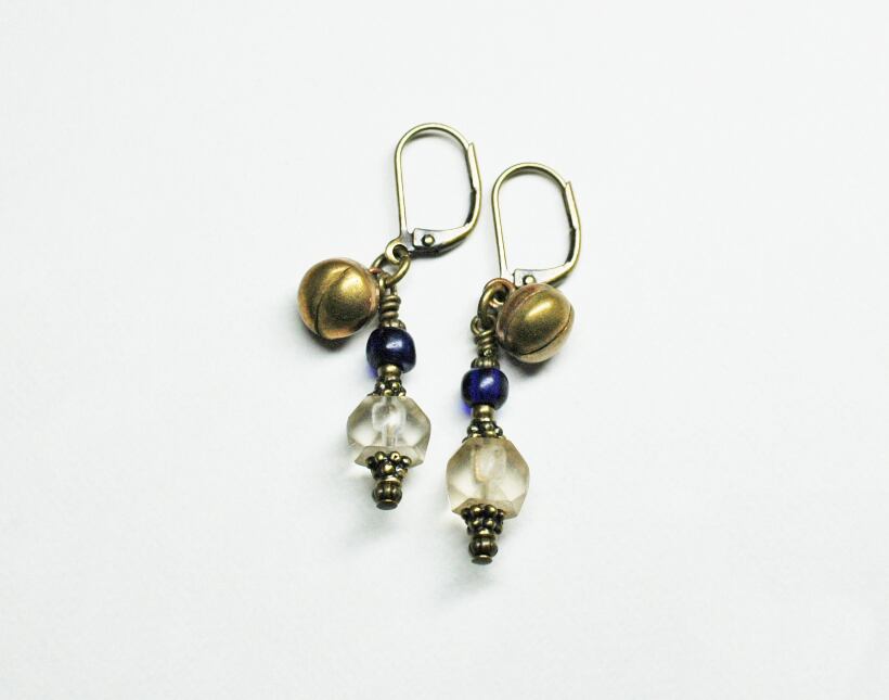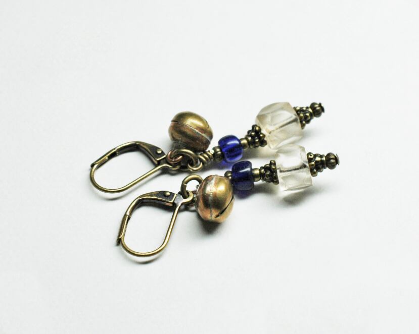 ぽってりアンティークボヘミアビーズとタイの鈴ピアス