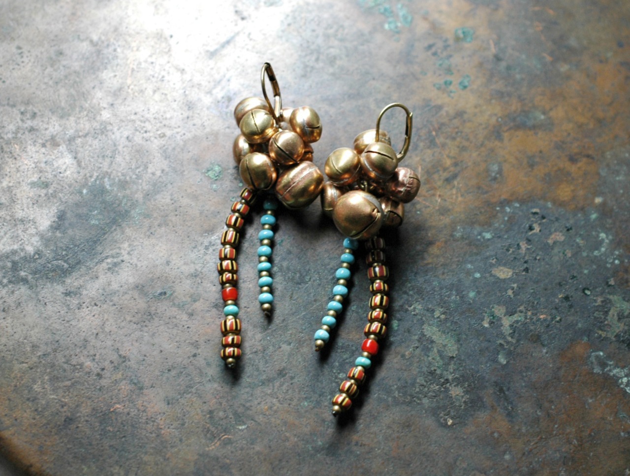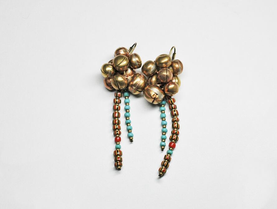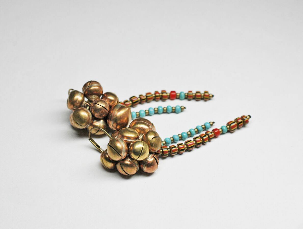 たわわに実った鈴と、アンティークのヴェネチアビーズを繋げたピアスです。