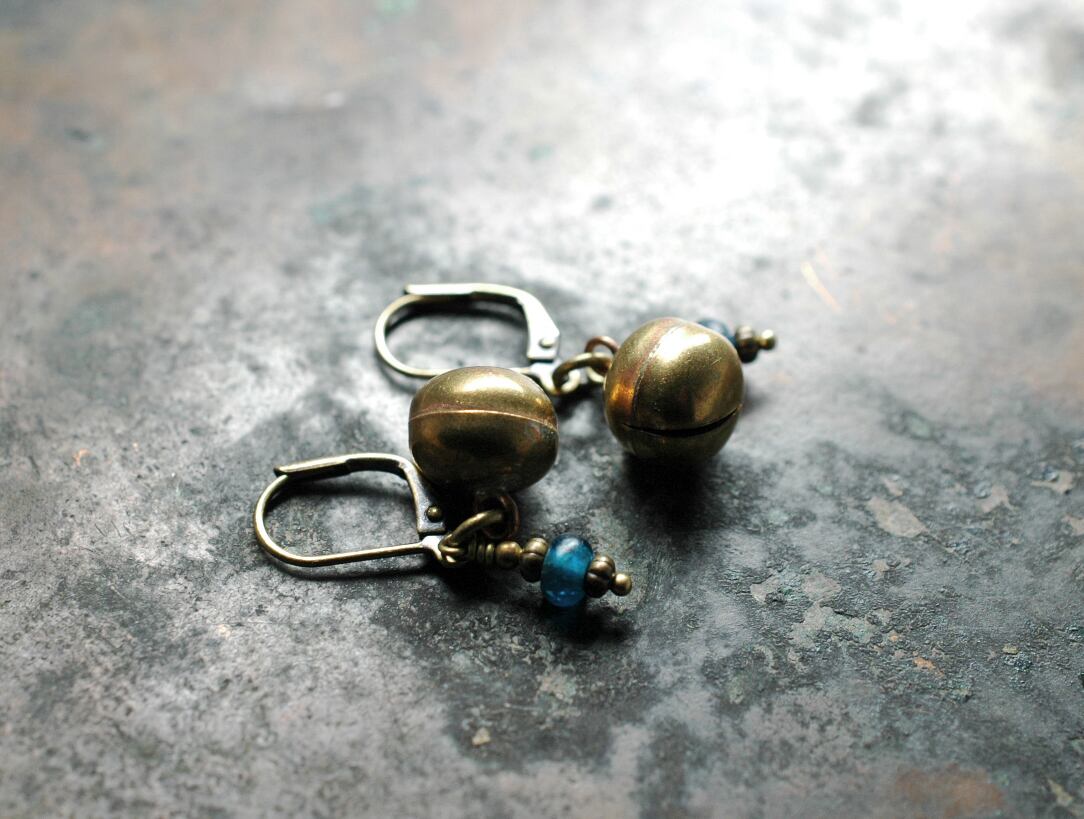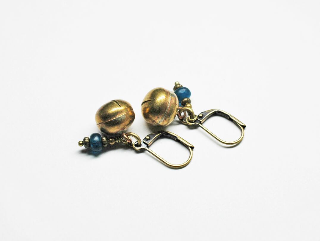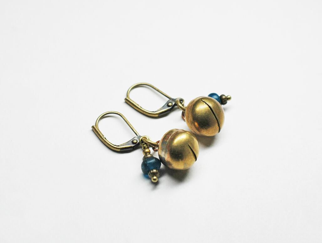 タイの鈴とブルーグリーンアンティークビーズの2粒ピアス