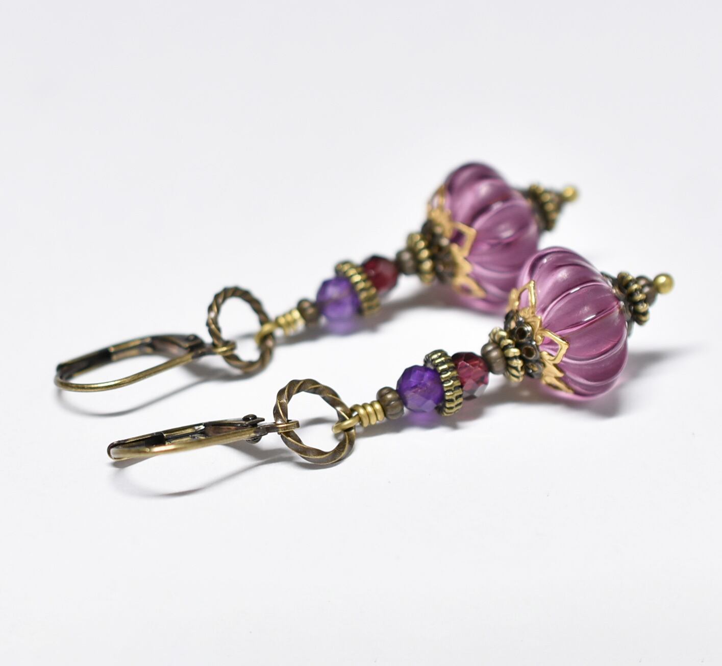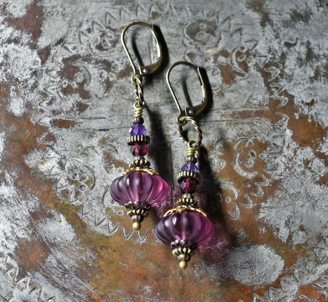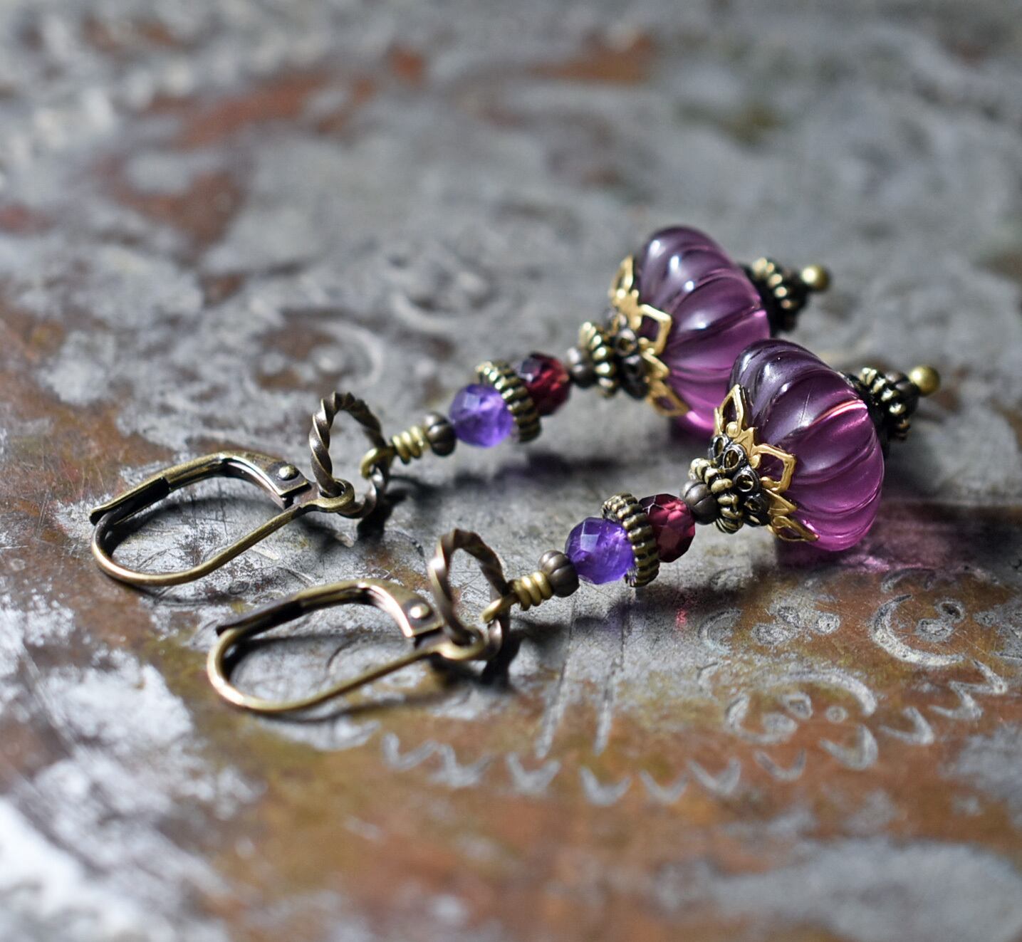 古代紫色japanヴィンテージビーズ、アメジストとガーネットのピアス