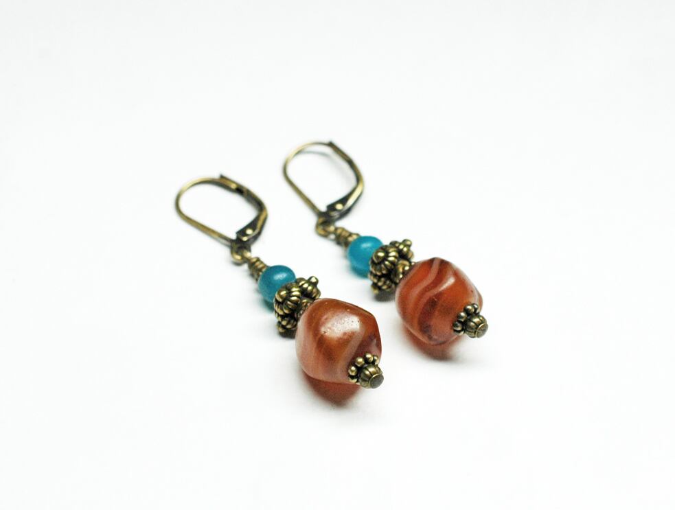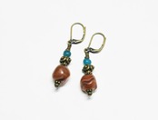 アンティークのボヘミアビーズと、インドパシフィックビーズを繋いだピアスです。