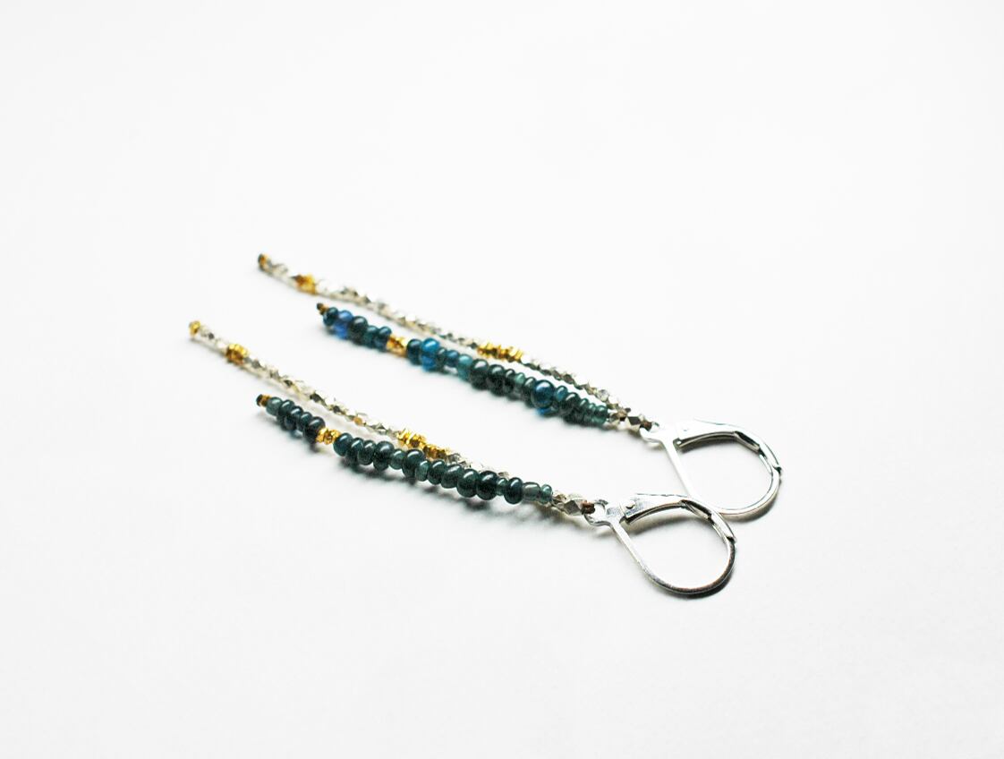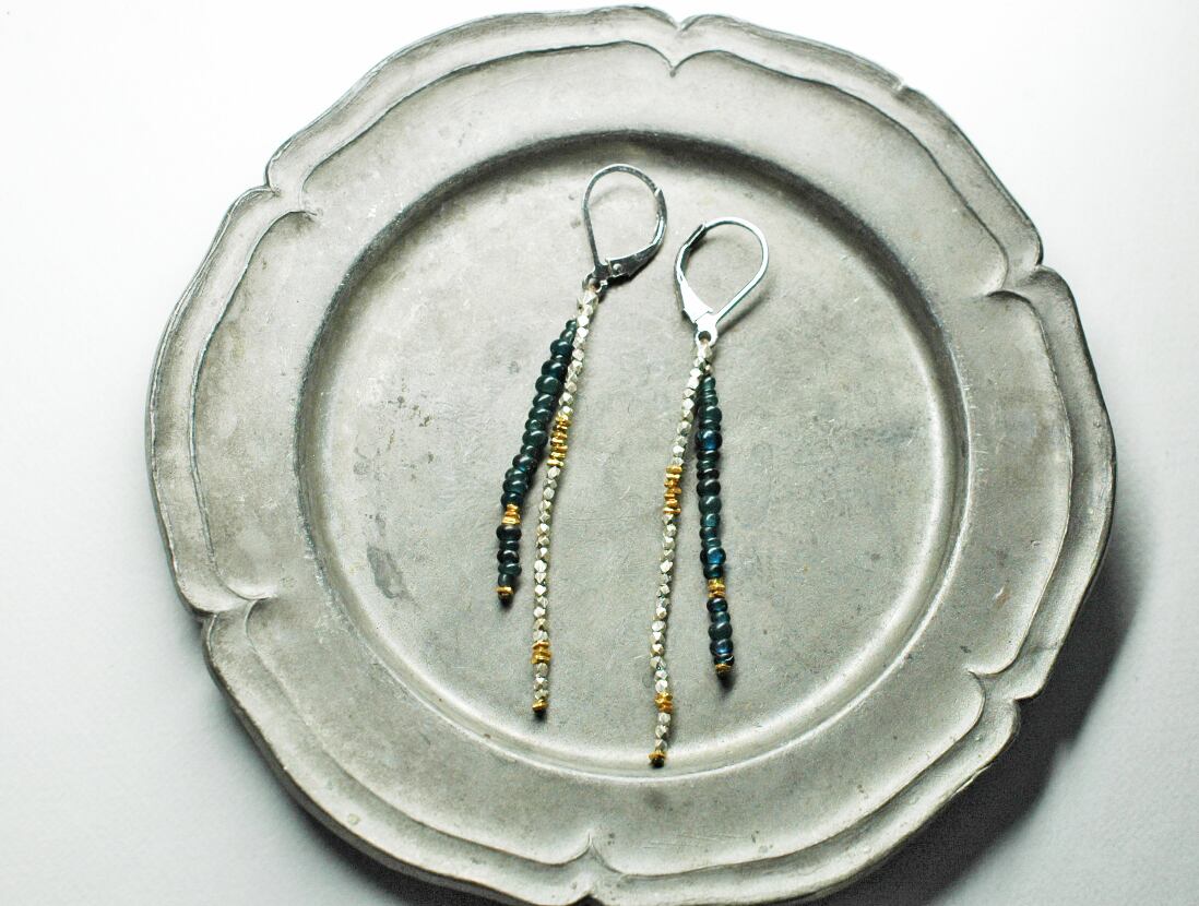 インディゴブルービーズと煌めくカレンシルバーのピアス