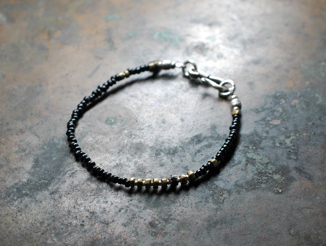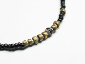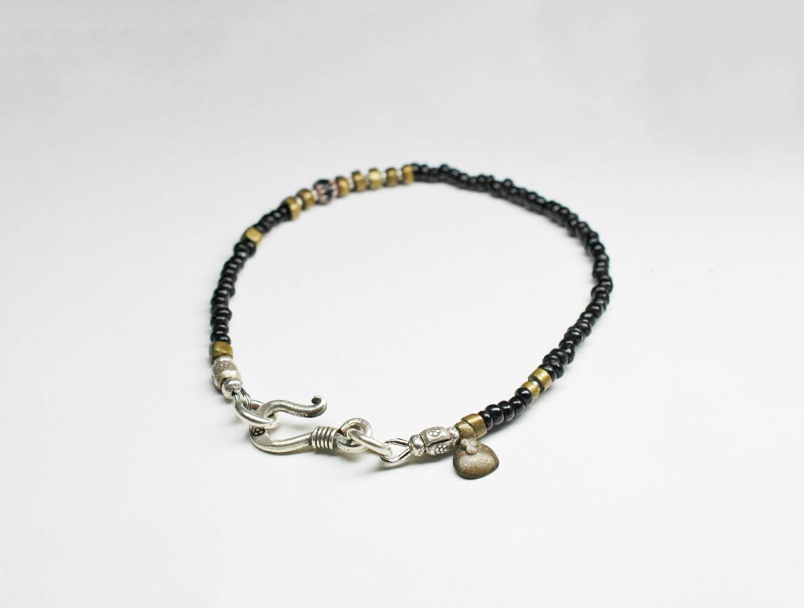 ブラックのアンティークビーズと、oldオリッサブラス、小さなカレンシルバーにブラックシェブロンを一粒入れたブレスです。